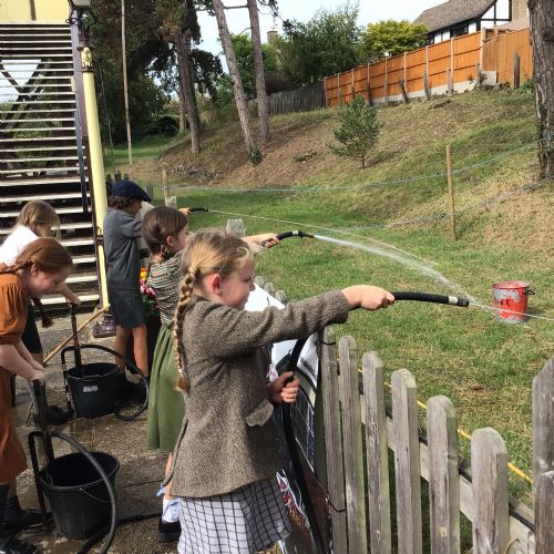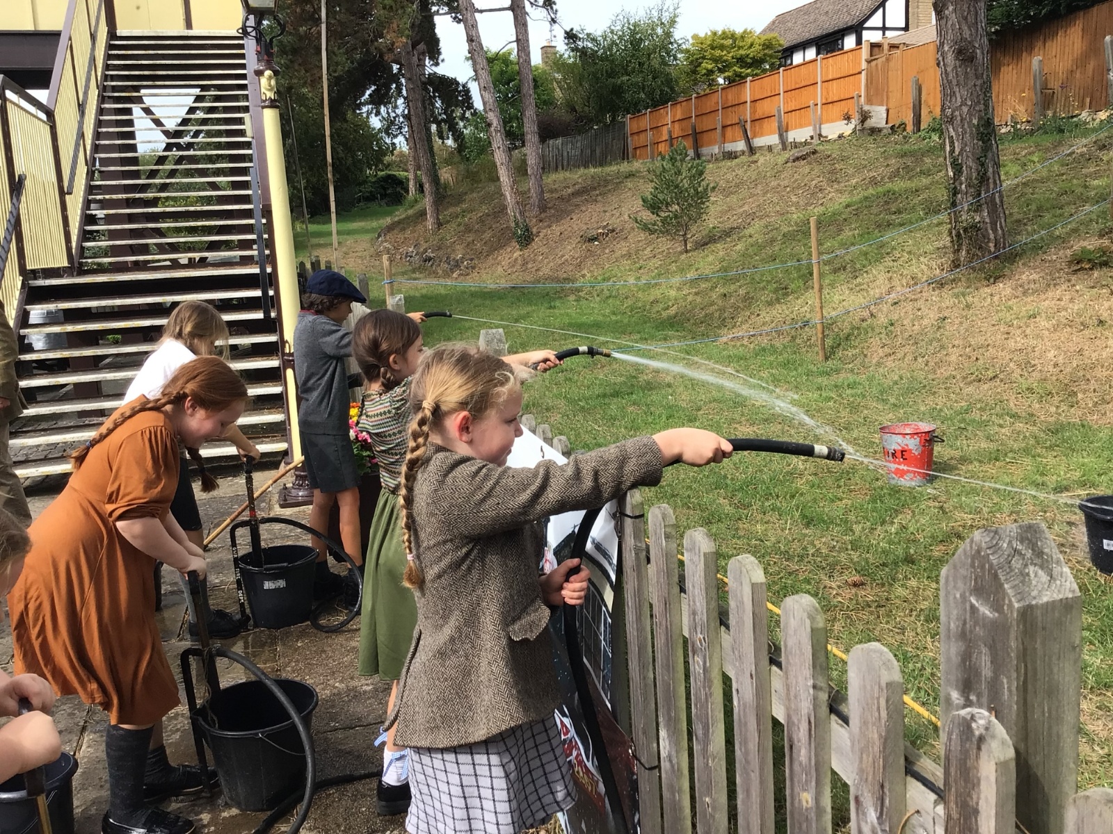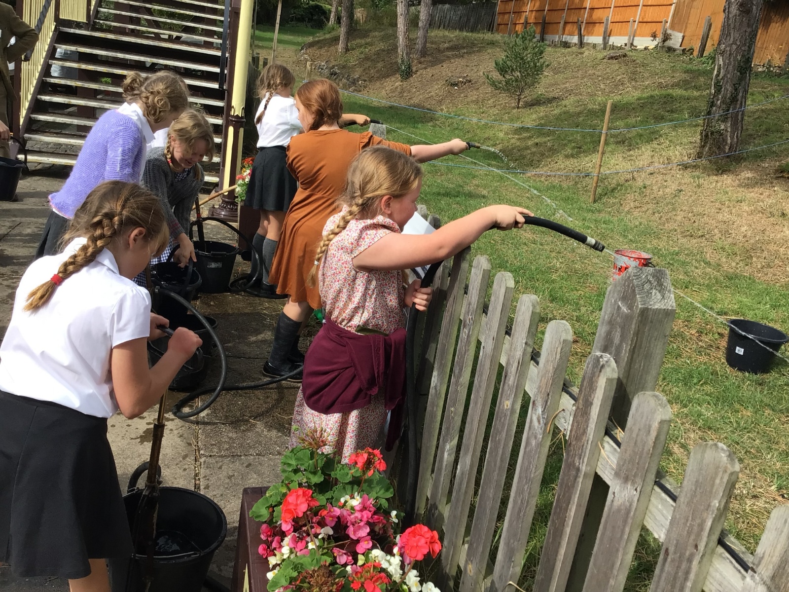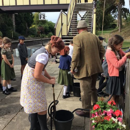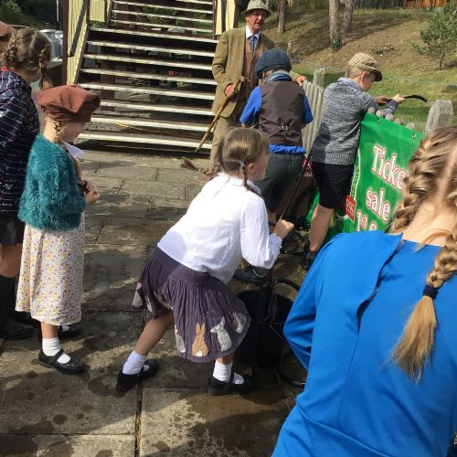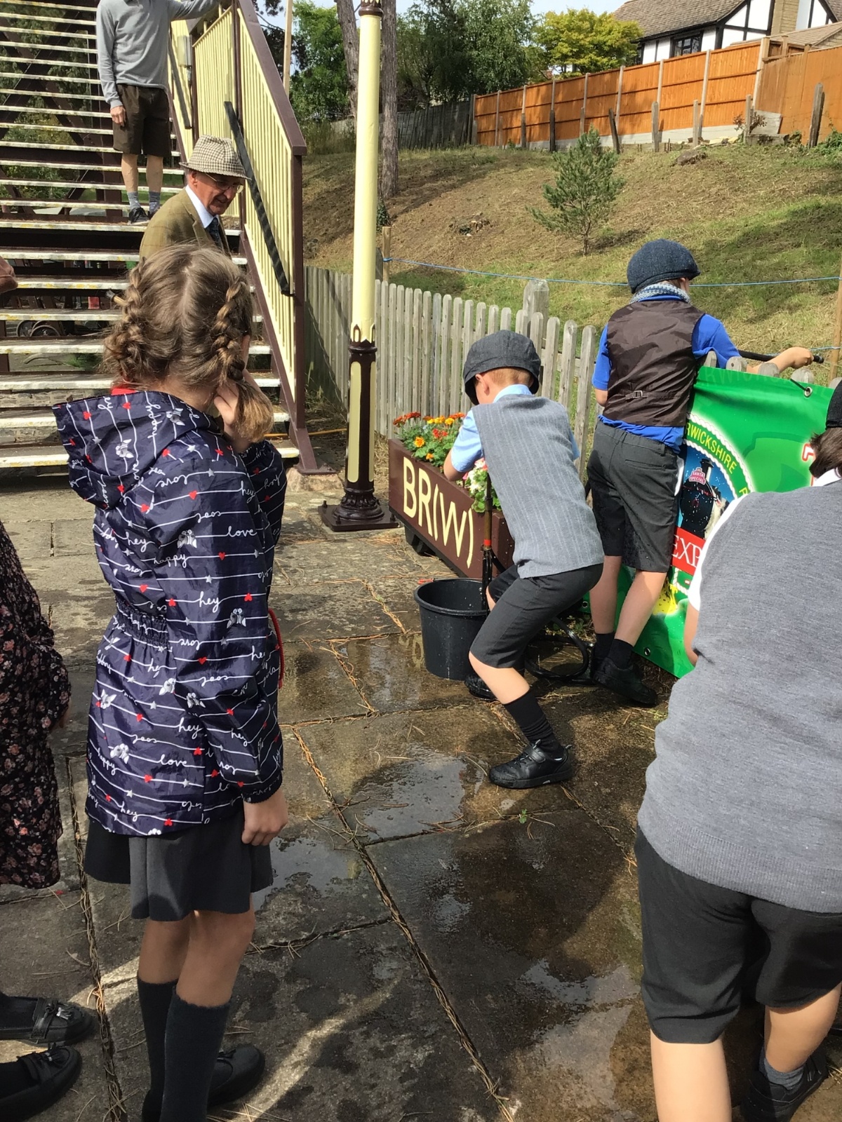 We had the most amazing start to our World War 2 learning when we experienced the life of an evacuee. We visited Winchcombe station where we were transported back in time to 1940. We spent time singing wartime songs on the steam train, and we met a lovely lady named Marcel, who is a real evacuee, and she shared her experiences of being evacuated 5 times during World War 2! We also had to spend some time in an air raid shelter. . . This was quite scary! Farmer Bill taught us some jobs, and we helped put out the fires!