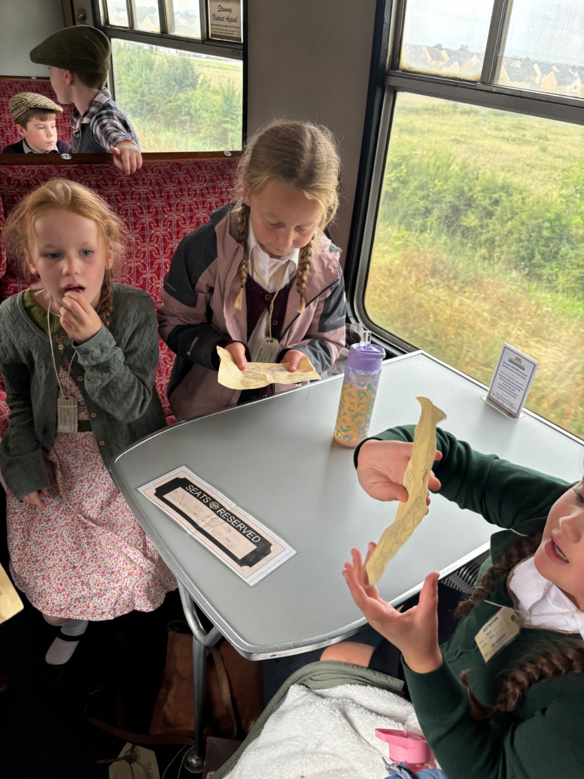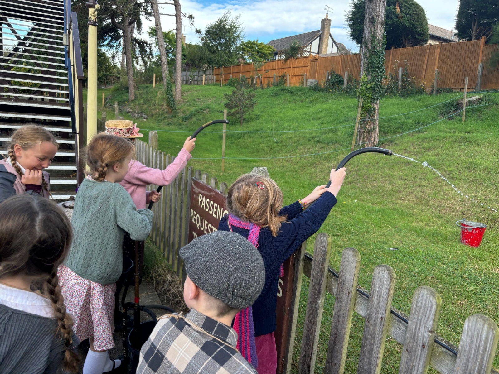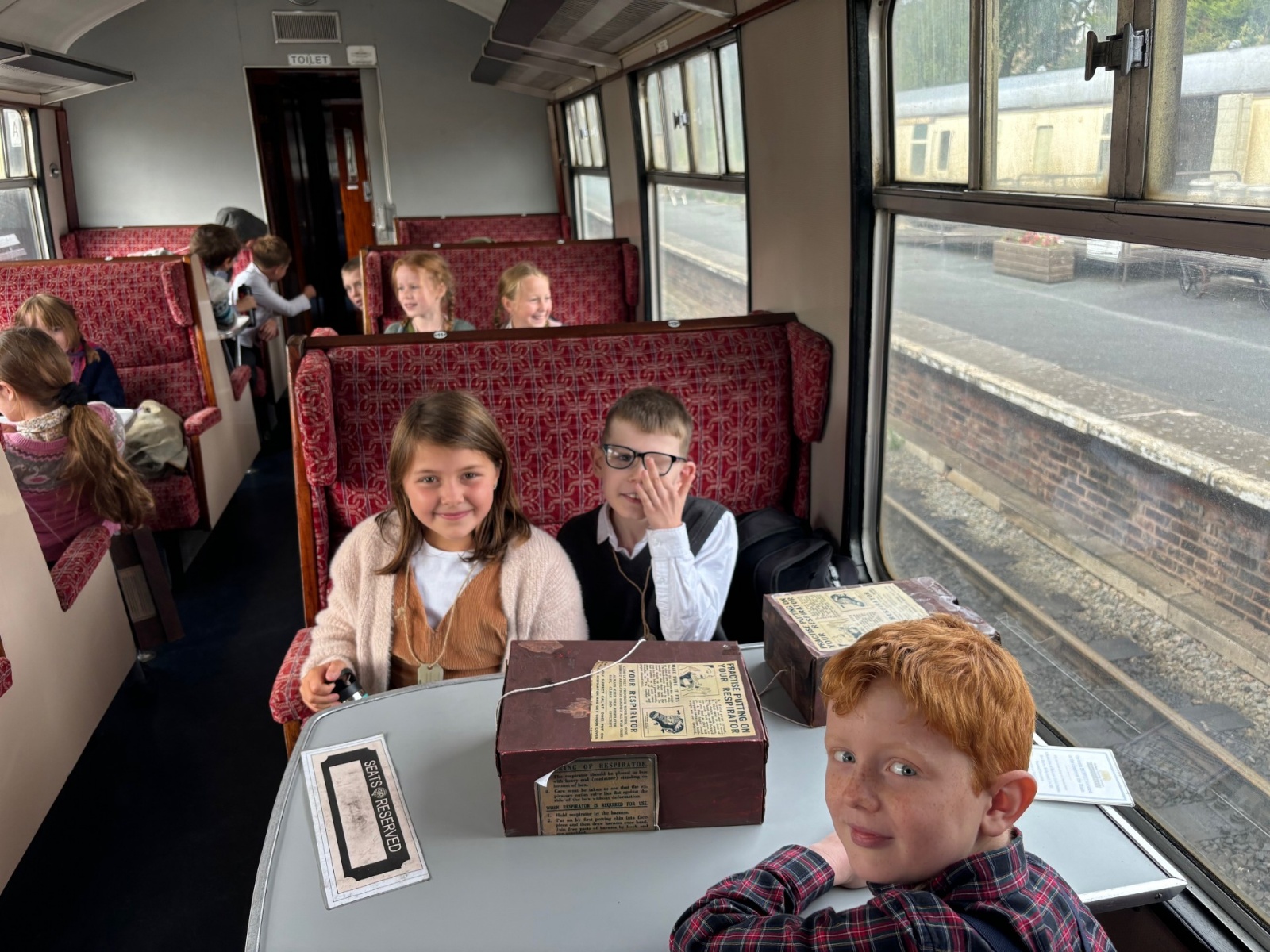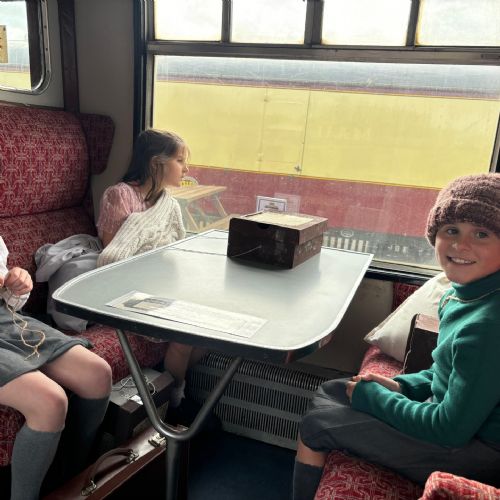 We learnt so much about what life was like for children our age during World War 2. We learnt how to put out fires, experienced an air raid, went to 'school', sung songs to raise our spirits during the steam train and . . . Miss Stroud and Mrs Meek caught a German Spy!!