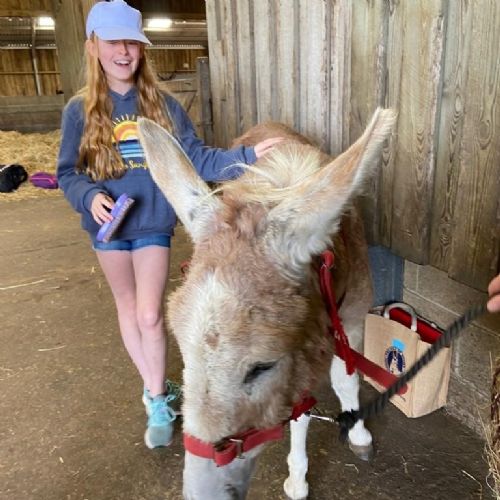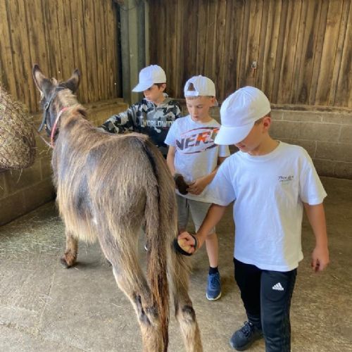 Today has been a very busy day! We spent the morning at the donkey sanctuary. We were able to meet all the donkeys, play the role of a vet by scanning the donkey's microchips and finding the correct name collars, and we also gave them a good groom! We were very excited to meet and groom Huntley's adopted donkey Thomas; We are currently still deciding on the 2022 adoptee!