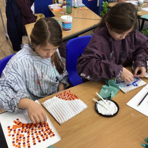 Class Ocean have enjoyed an Autumn Term of Roman Art. They have explored, designed and created their own natural and modern ceramic mosaics. The children have also been exploring highlight, shade and shadow and how it can be used to enhance their artwork. Inspired by Roman architecture, the children have created their own 3D Roman column pictures.