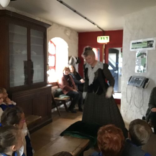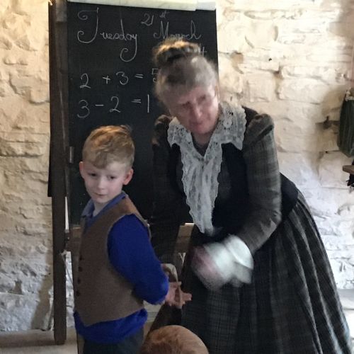 We experienced a Victorian school day-we wrote our name using 'Victorian curly letters' on a slate, found out how they were taught maths and learnt about punishments for being late, not listening and not sitting up straight!!