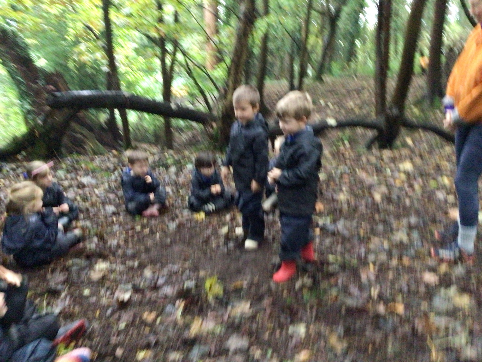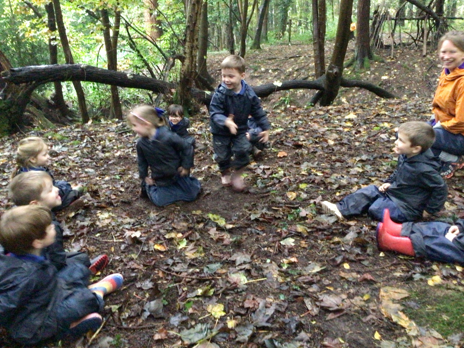 We had great fun exploring the woods behind school. We climbed the steep hill and saw where the water had run down during the heavy rainstorm. We played 1 2 3 Where are you, found a stick and thought of a new use for it and played a game to learn about squirrels collecting food in preparation for Winter. We looked very carefully and spotted some mushrooms and toadstools growing.