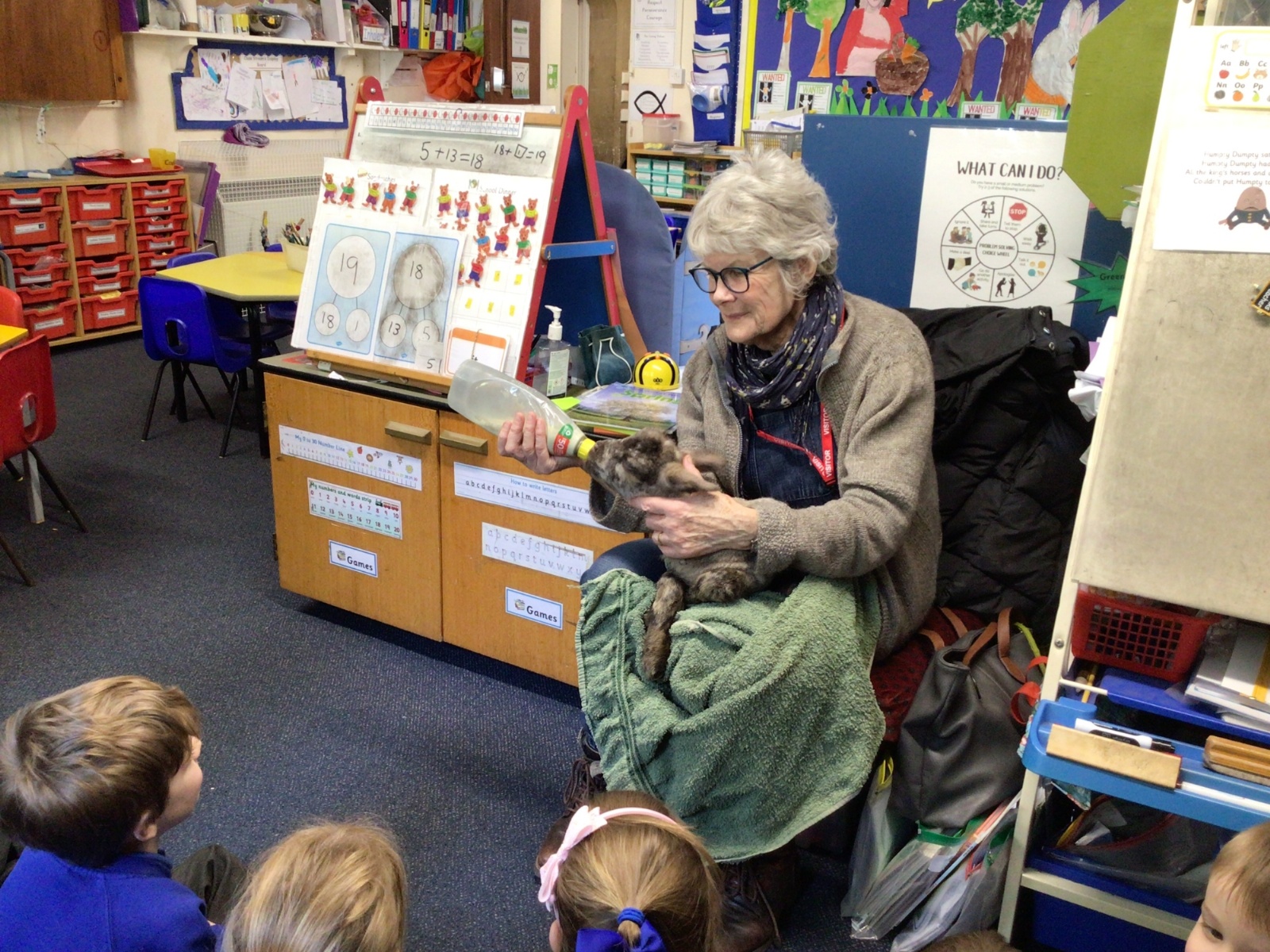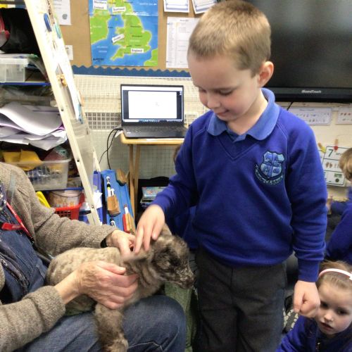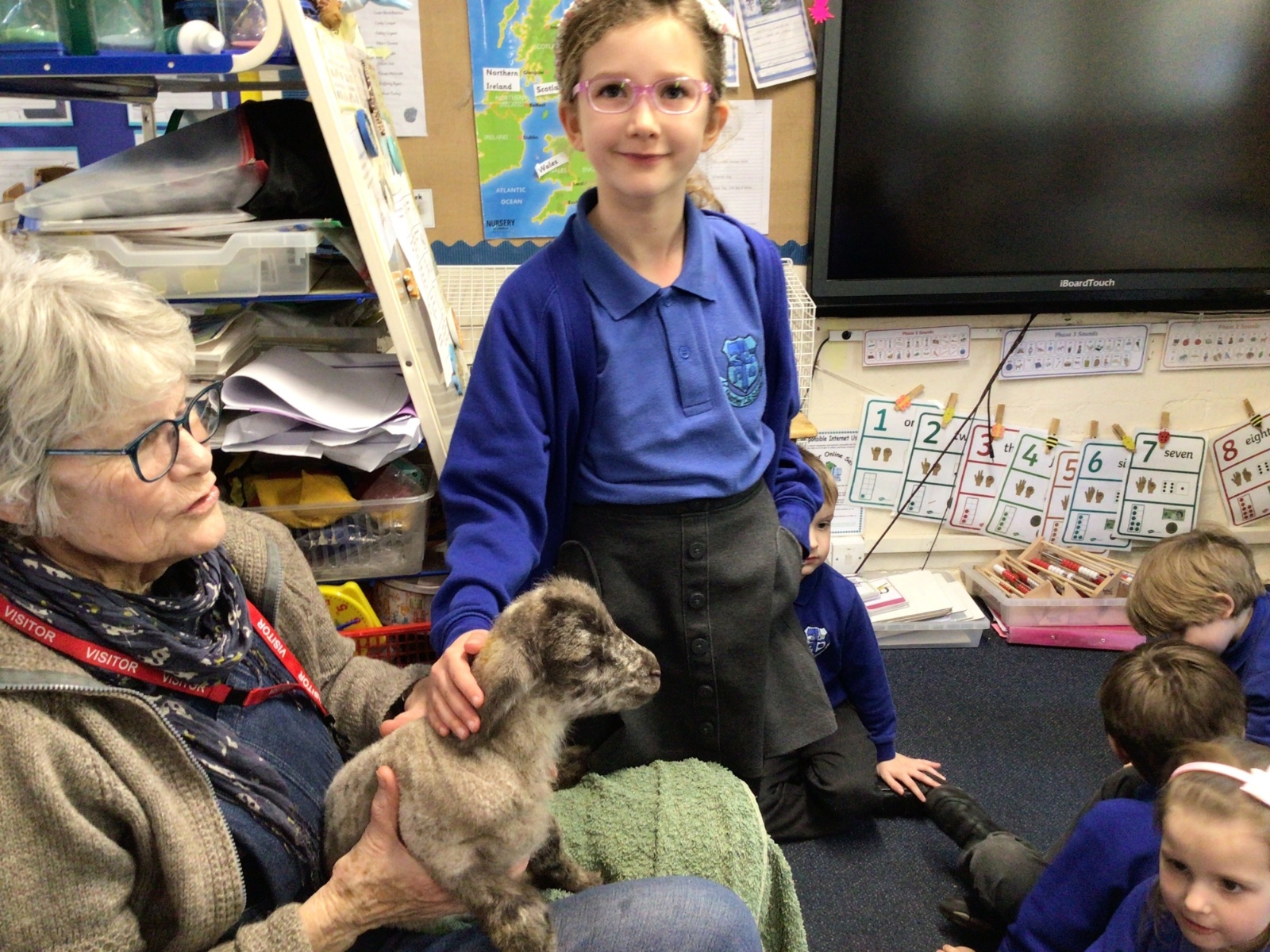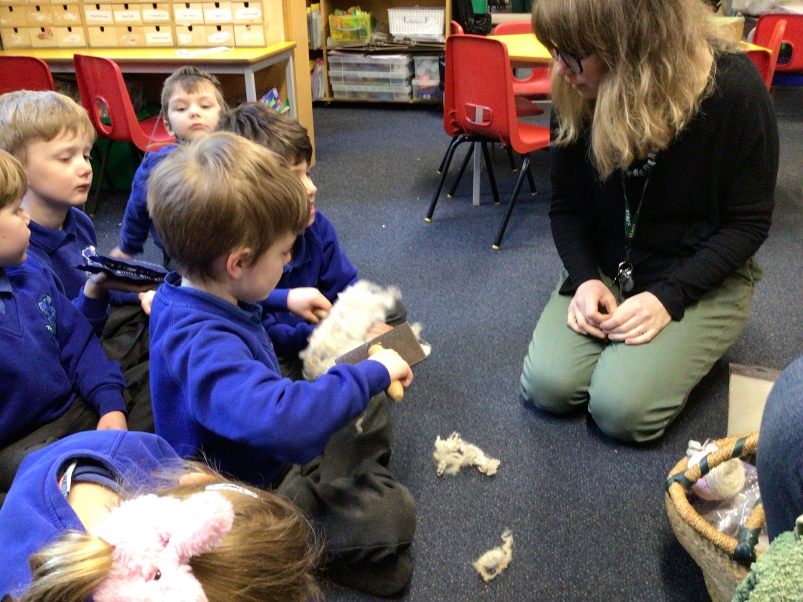 Mrs Credland brought a three-week-old lamb to show us. It was a triplet so it needed to be bottle-fed. She brought in a fleece and showed us how the wool is turned into yarn ready for knitting using a process called carding. We named the lamb 'Dandelion'. It was really well-behaved and enjoyed us stroking it. Mrs Credland gave us some wool and a 'sheep soap' to take home. Thank you!