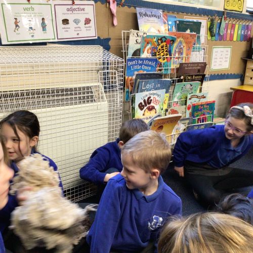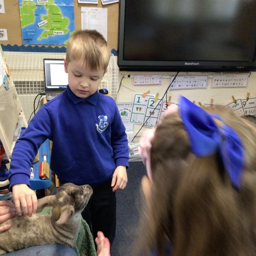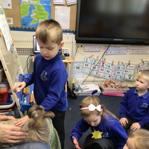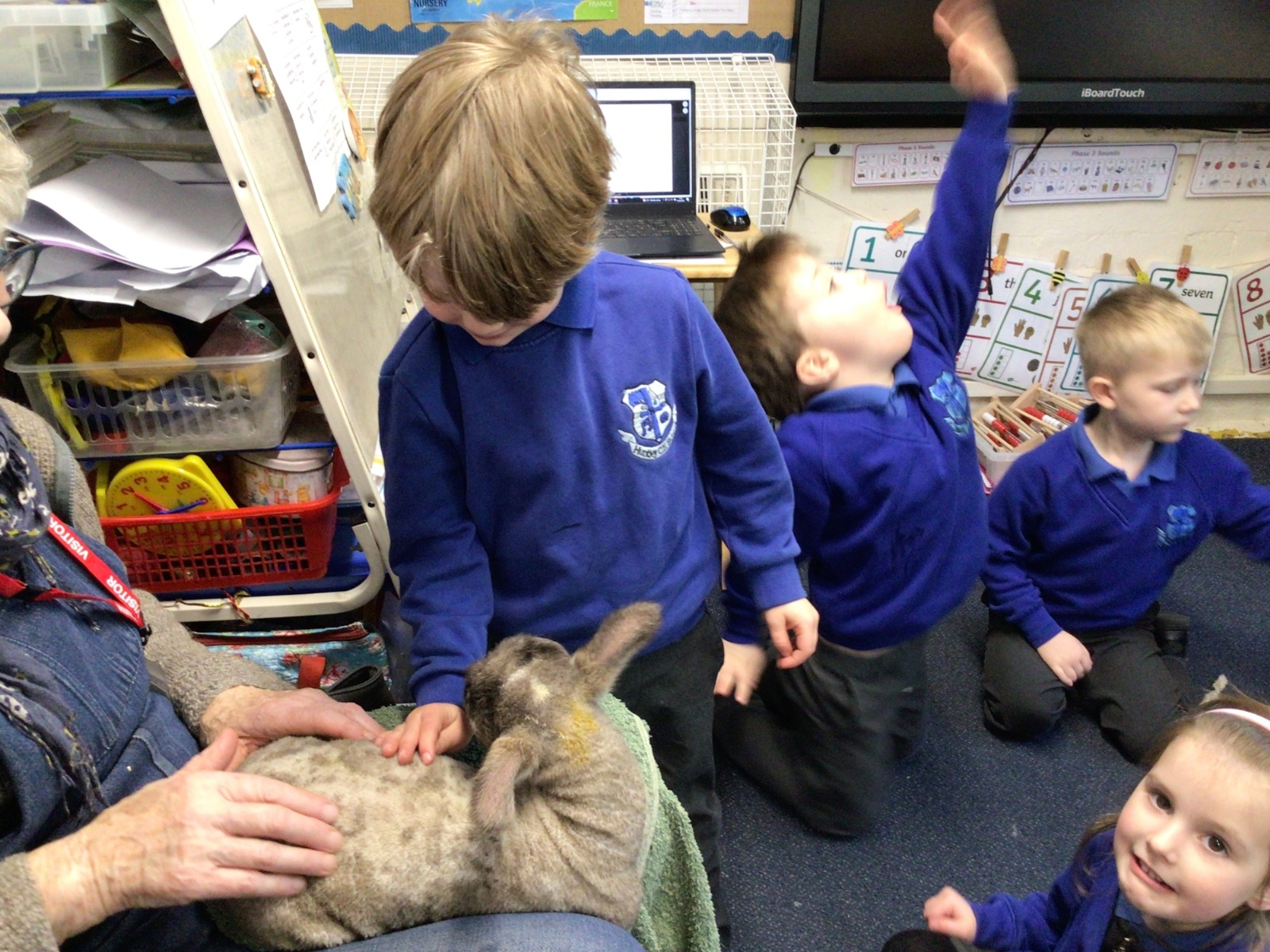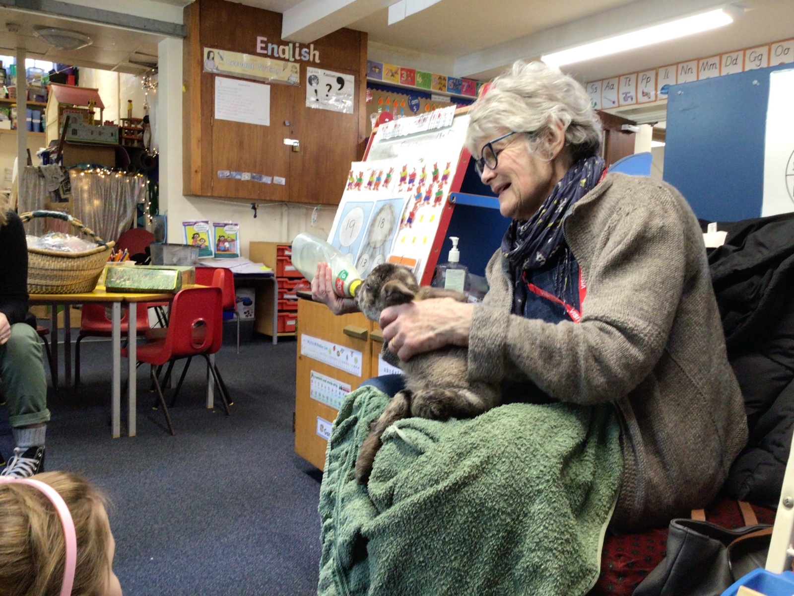 Mrs Credland brought a three-week-old lamb to show us. It was a triplet so it needed to be bottle-fed. She brought in a fleece and showed us how the wool is turned into yarn ready for knitting using a process called carding. We named the lamb 'Dandelion'. It was really well-behaved and enjoyed us stroking it. Mrs Credland gave us some wool and a 'sheep soap' to take home. Thank you!