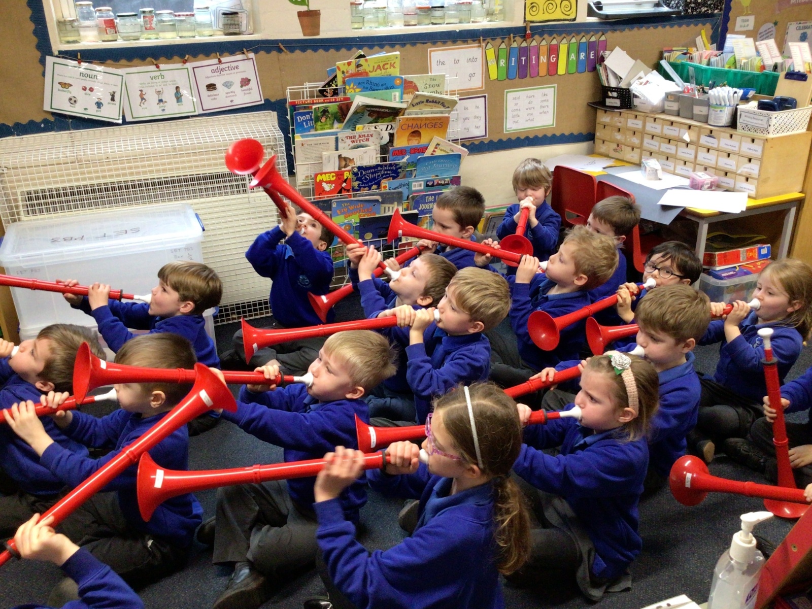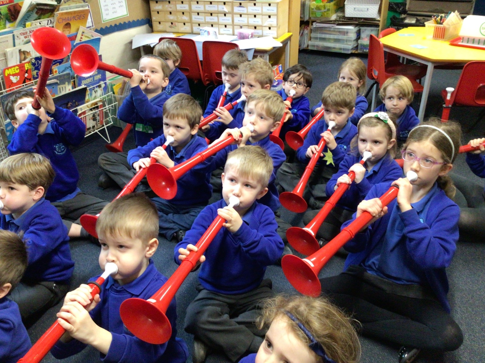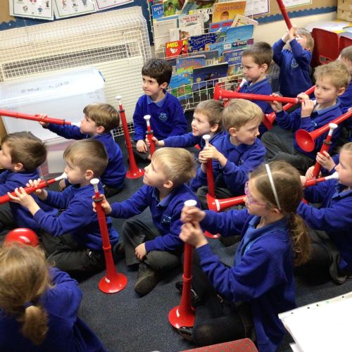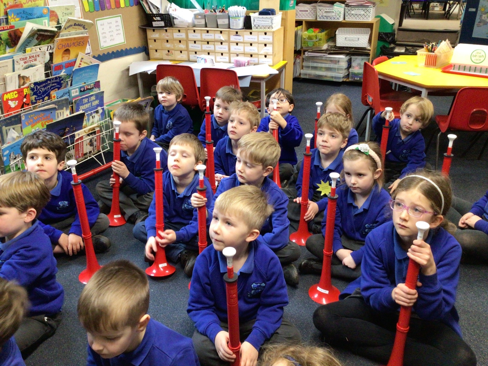 Peter came to teach us how to play an instrument called a 'P Buzz', it is like learning to play the trumpet or trombone. It was very loud and exciting when he played his trombone for us.