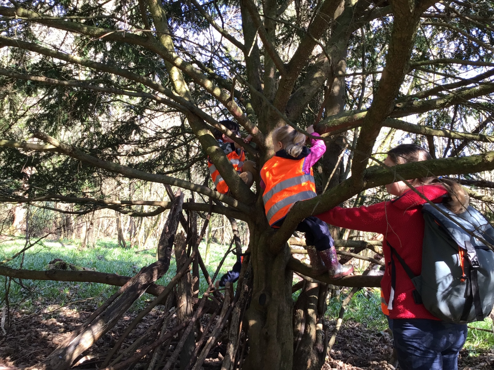 We had a lovely walk in the sunshine looking for signs of Spring, den building, climbing trees and playing 1,2,3 where are you?