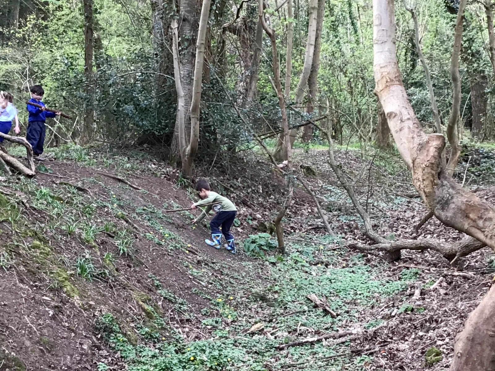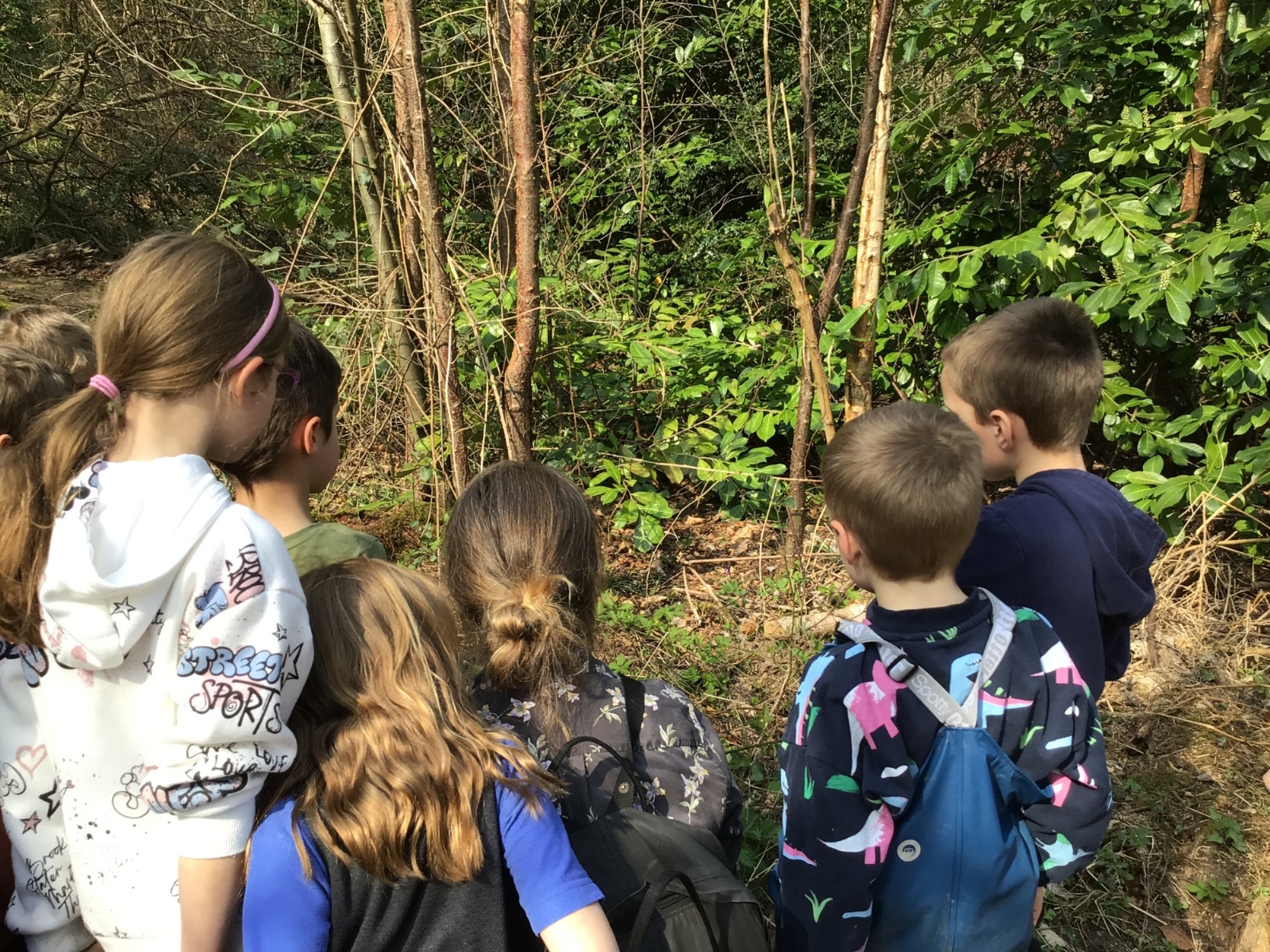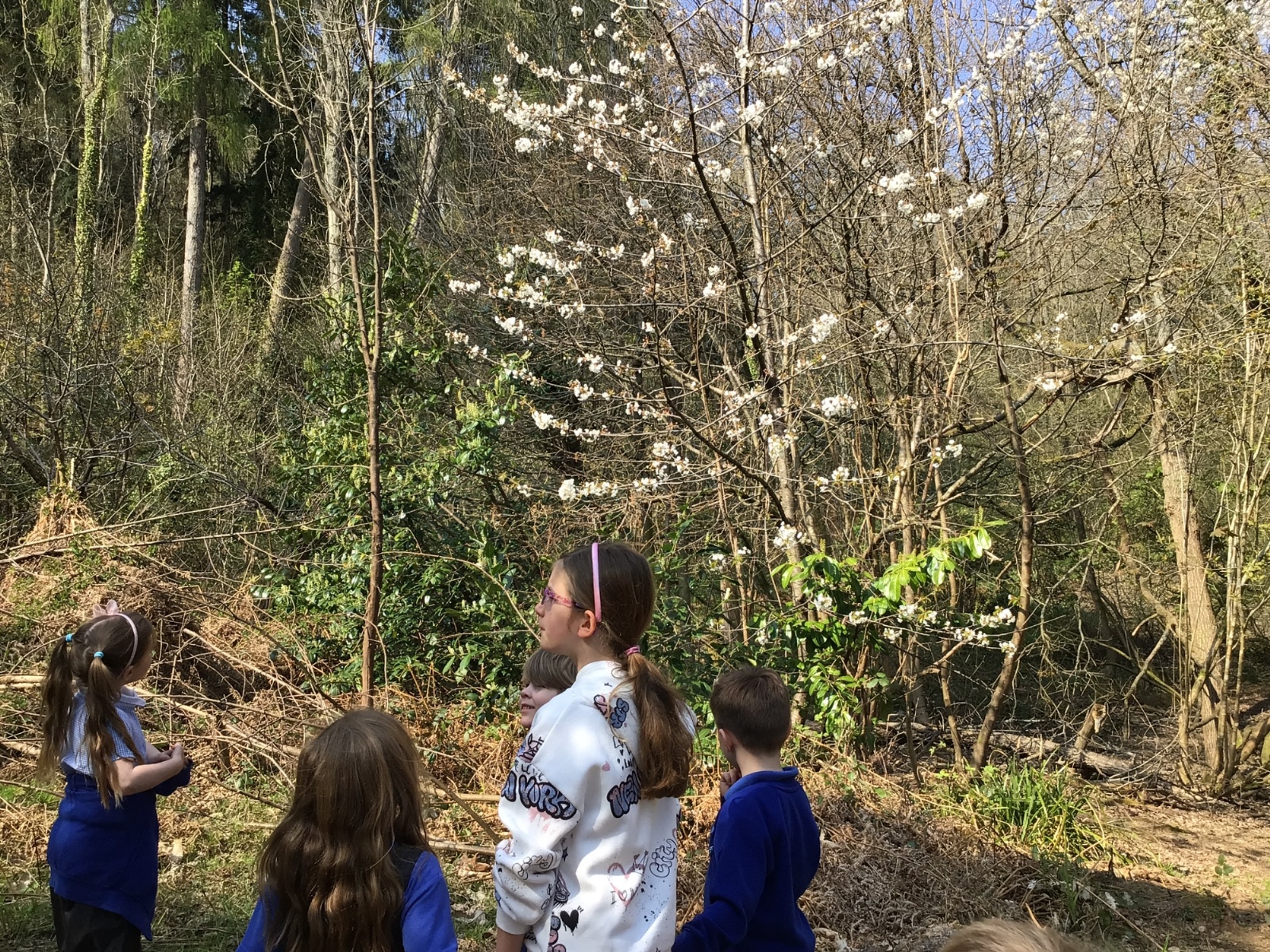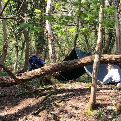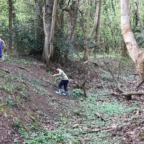 We went for a walk in the woods to search for signs of Spring. We saw buds and blossom on the trees and flowers including daffodils and bluebells. We even saw a few butterflies. We built a den and climbed some trees. What a great afternoon!