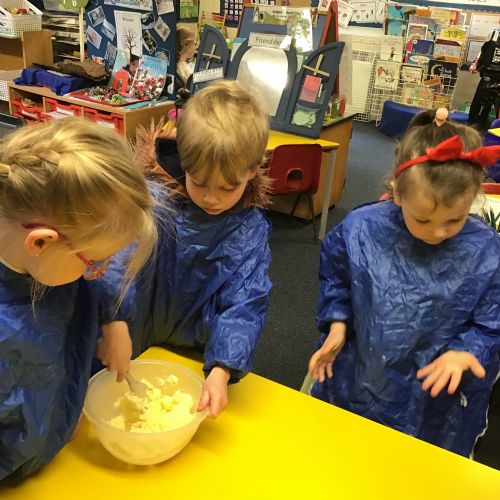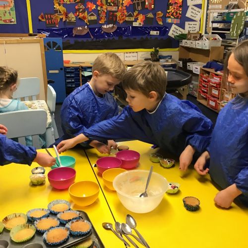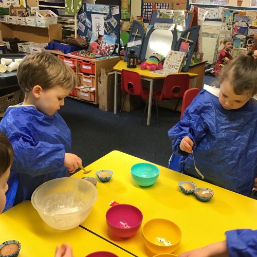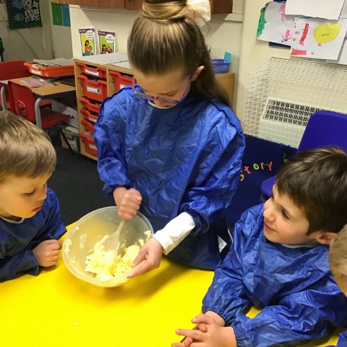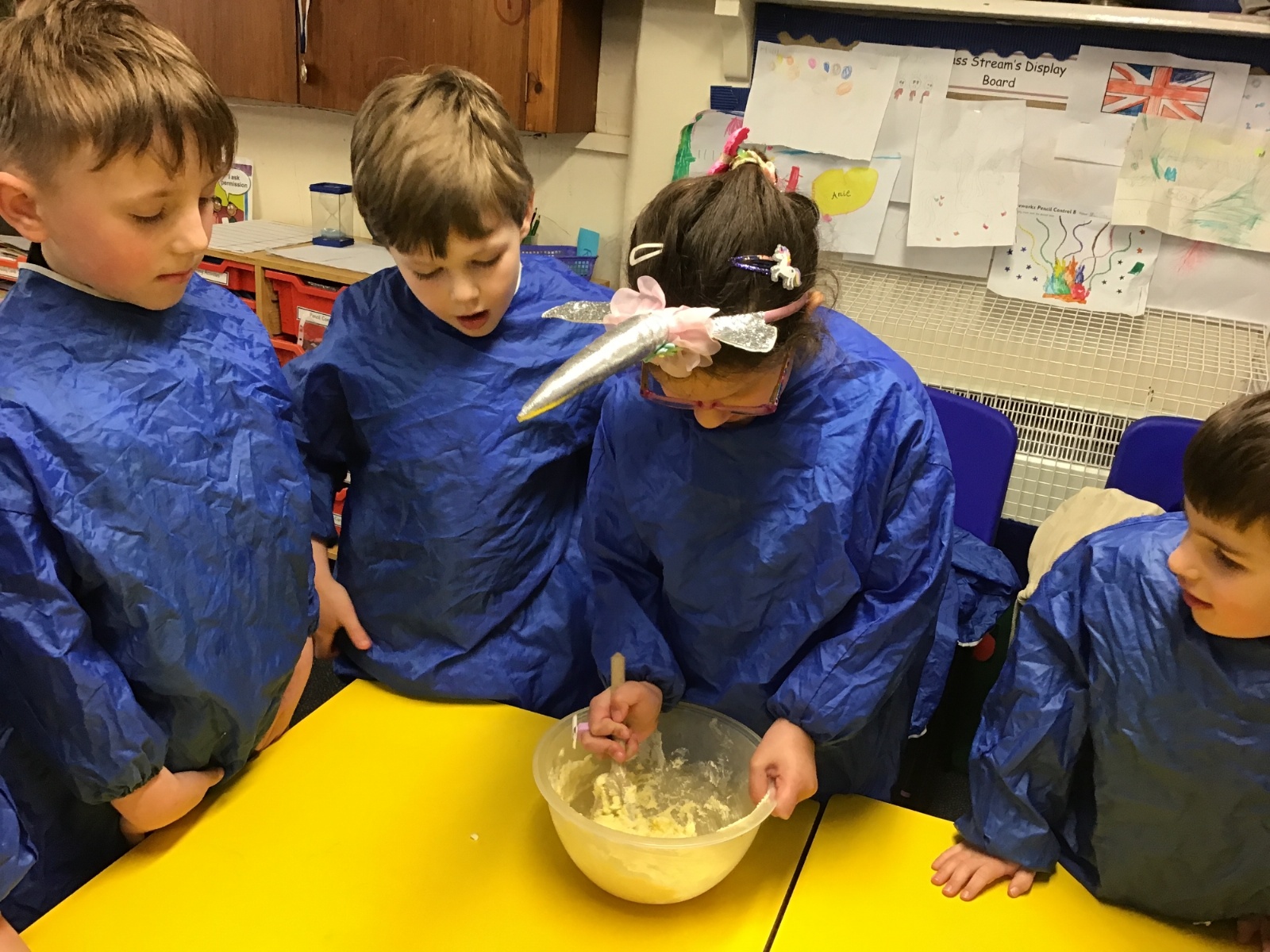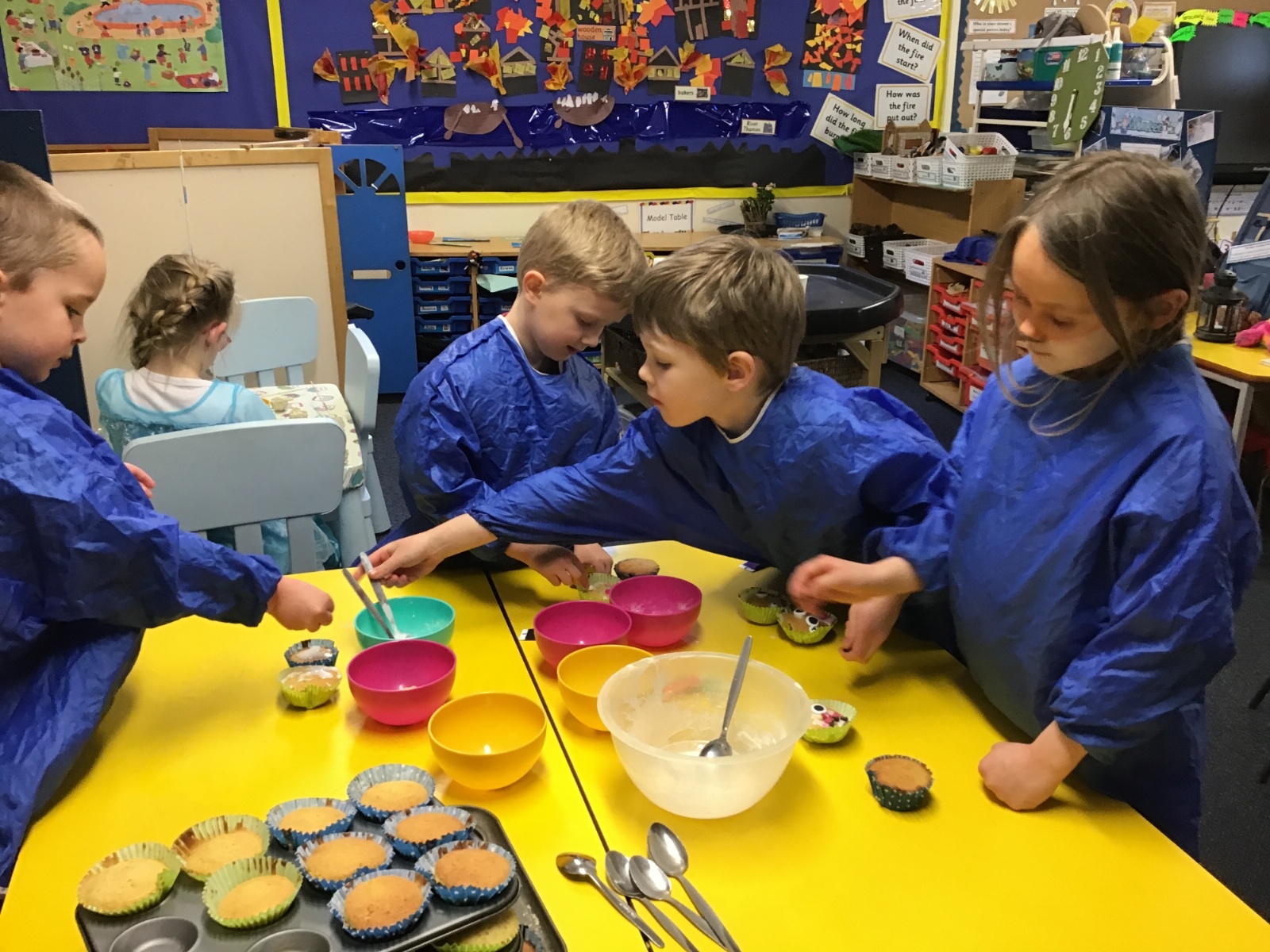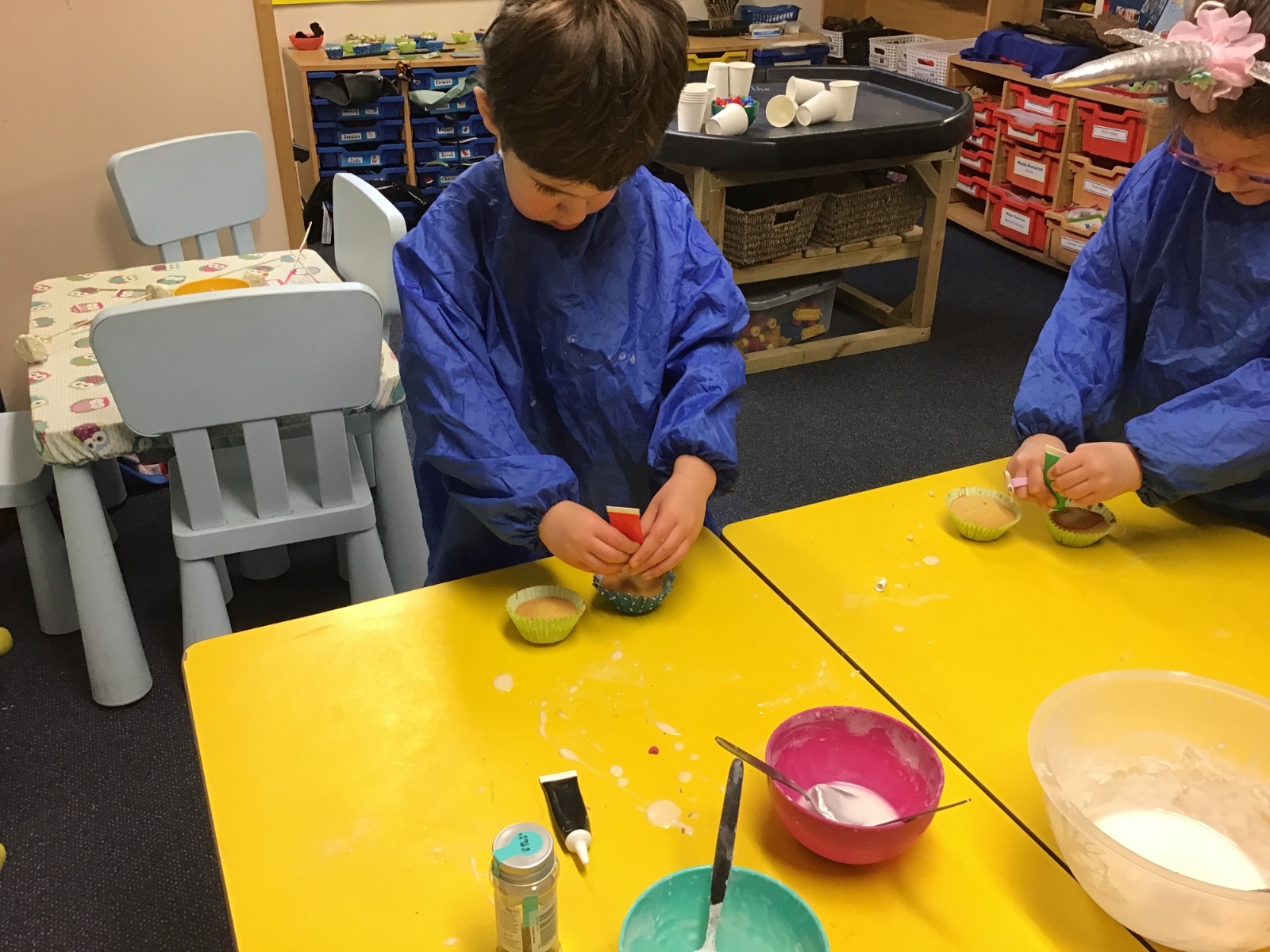 We had fun dressing up as characters from our favourite books. We read the story of 'The Boy, the Mole, the Fox and the Horse' and talked about kindness. The mole in the story loves to eat cake so we followed instructions to make some fairy cakes. We ate one and demonstrated kindness by giving a cake to someone else.
