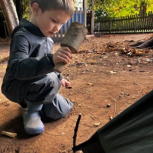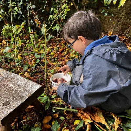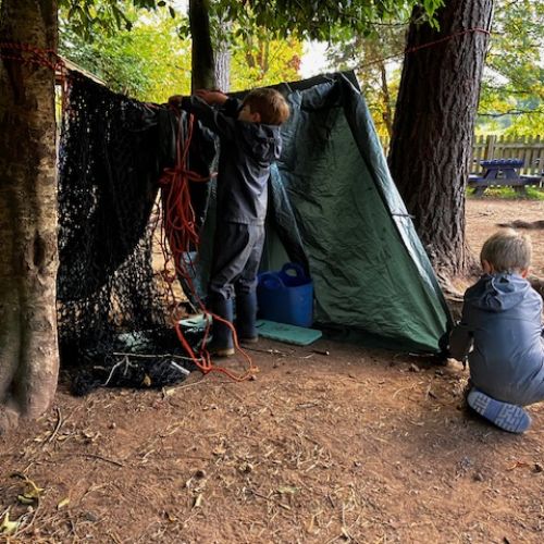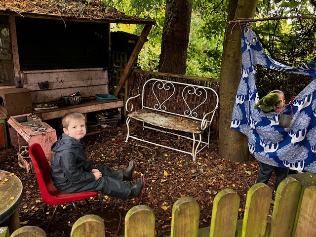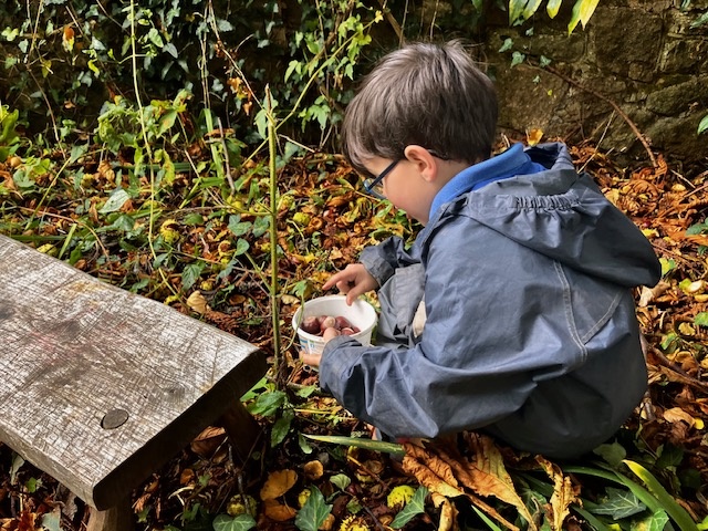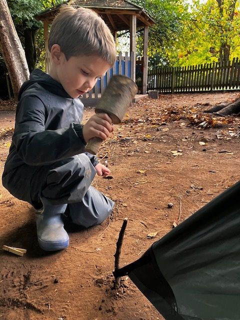 Some lovely Autumn sunshine in which to gather conkers, make funny puppet shows, do a litter pick (so much Lego!) and make dens with pretend fires using the red and yellow leaves. Without tent pegs, we improvised with sticks to hold up our canopy. Top problem solving year 1!