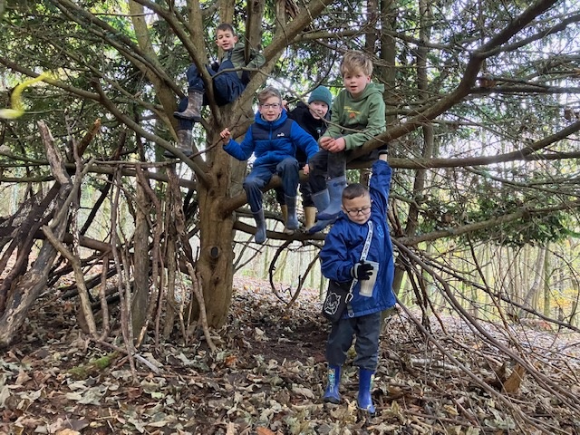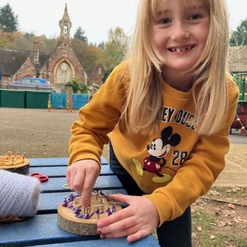 Developing our tool skills with intense concentration to make spiderwebs with hammers and nails, and we whittled sticks to cook marshmallows on the fire. We were very creative making a theatrical production with a big pile of 'leaf popcorn' and fishing rods. We explored the woods behind school, making 'journey sticks' along the way.