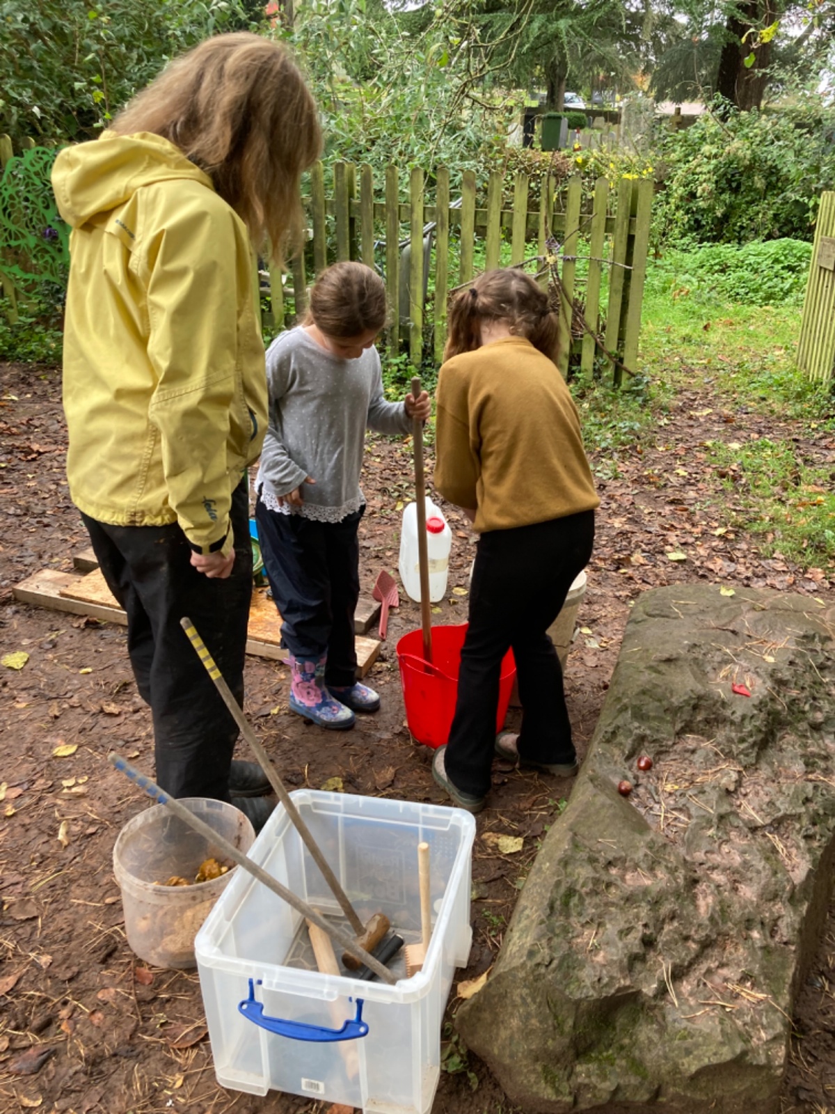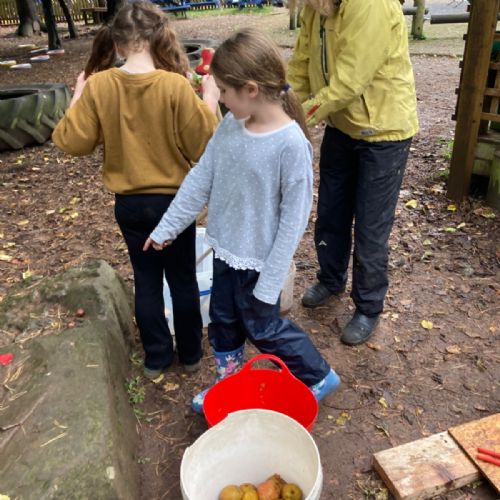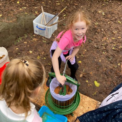 Windy day kites, treasure hunting, apple juice pressing, woodland adventures, bug hotel build, cobweb weaving, clay creatures