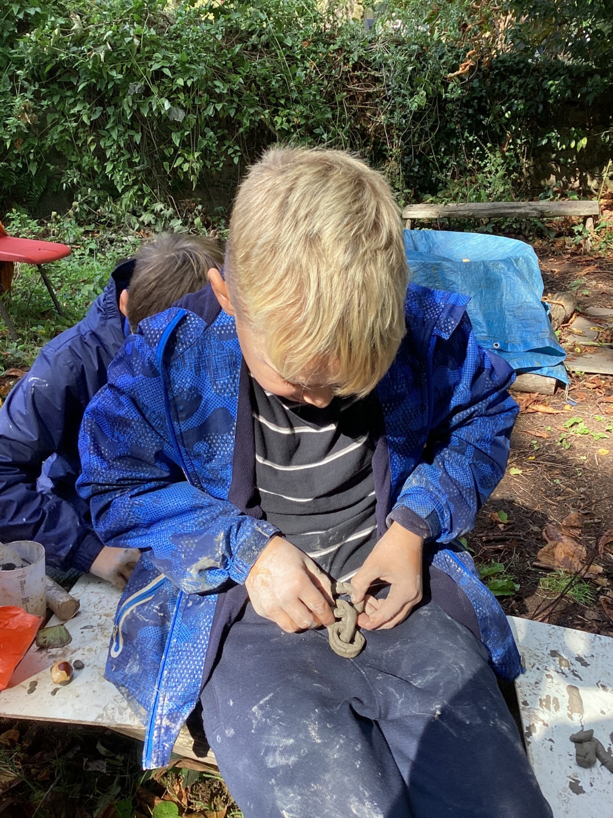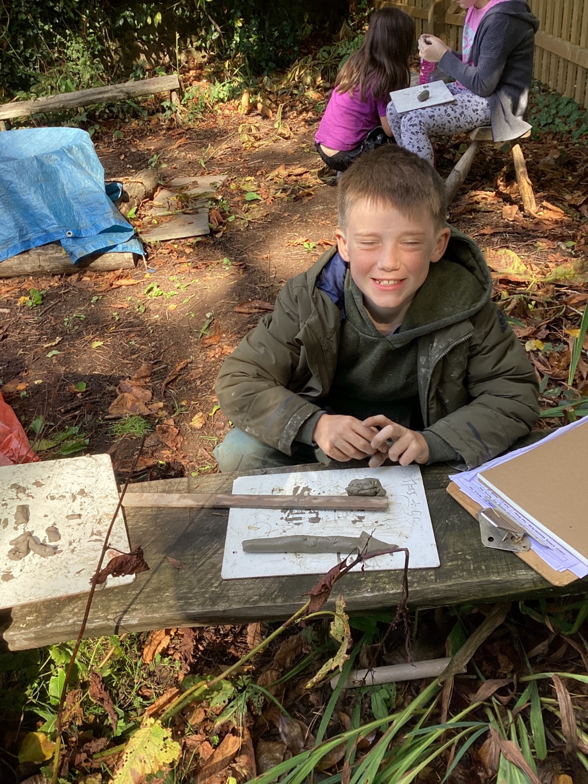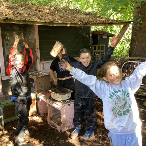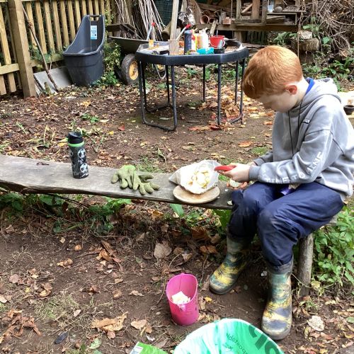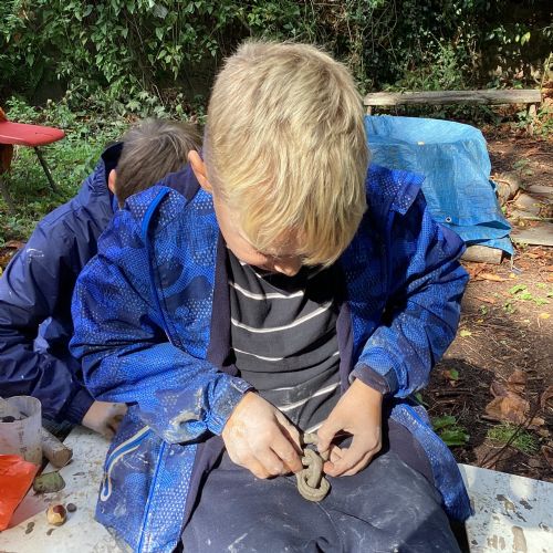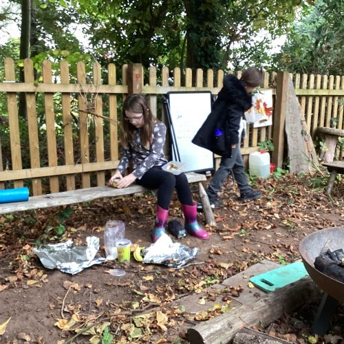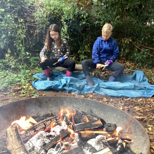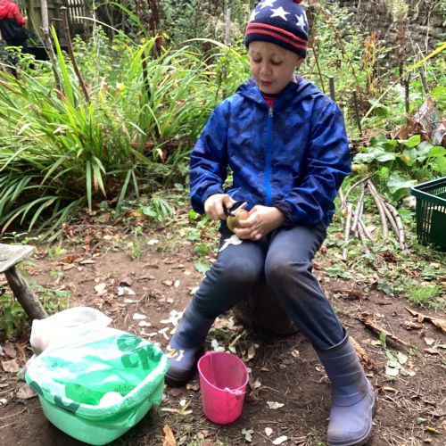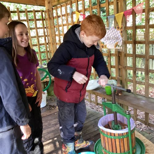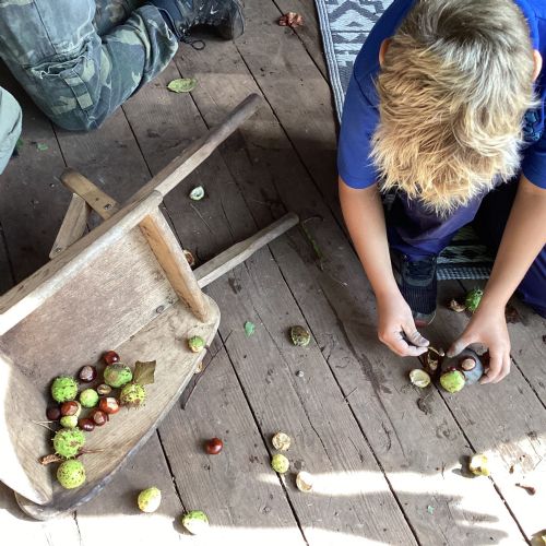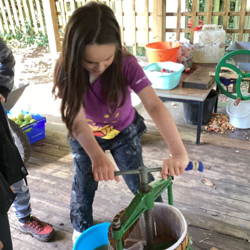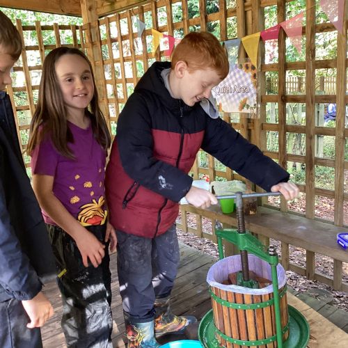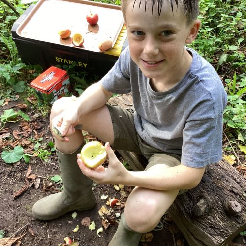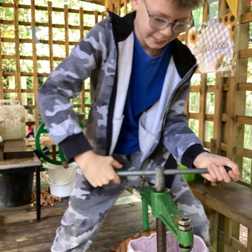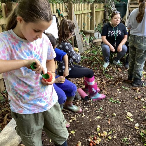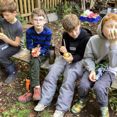 Autumn sunshine for APPLES! - baked apple crumbles on the fire, apple bobbing relay, toasted apple cubes with cinnamon and sugar and apple juicing. Then conker creations, determination to have success with ice cream making, lots of fabulous clay creativity, whittling and trench clearing.