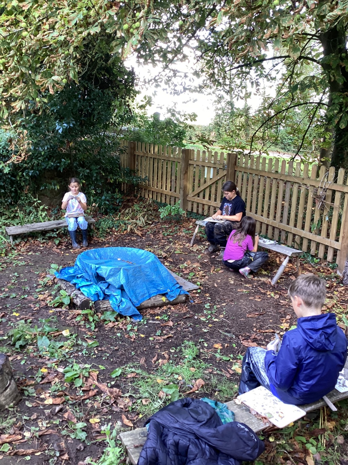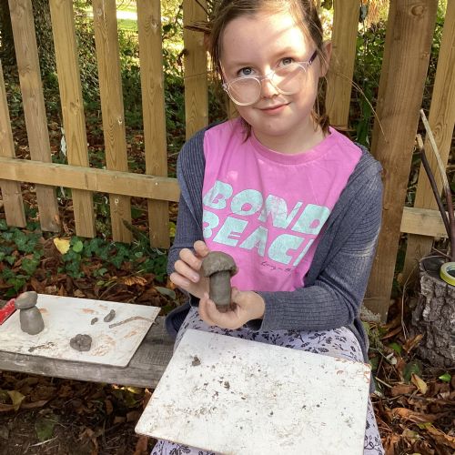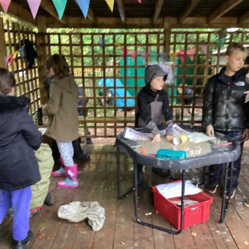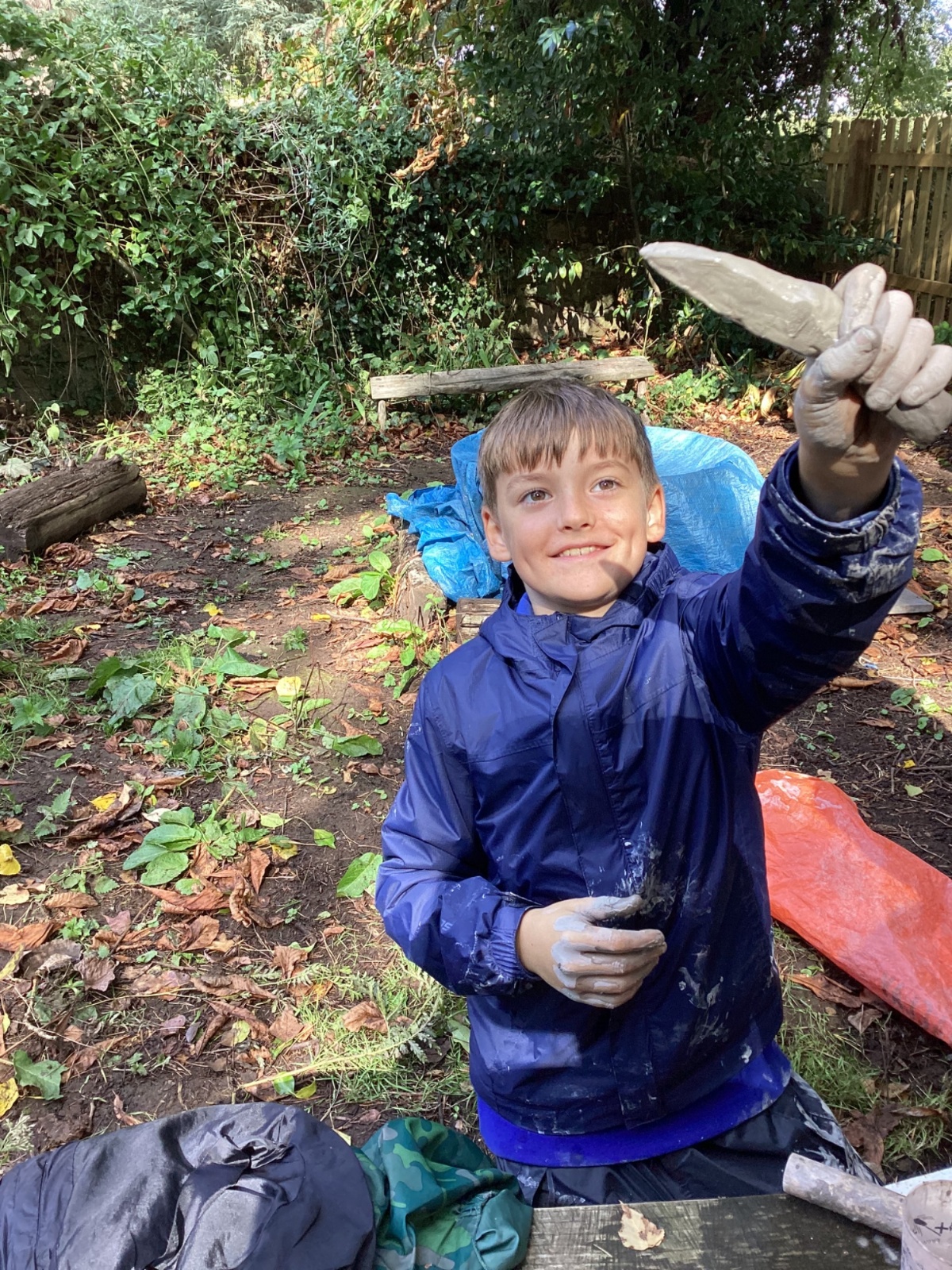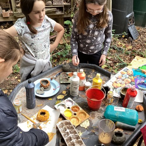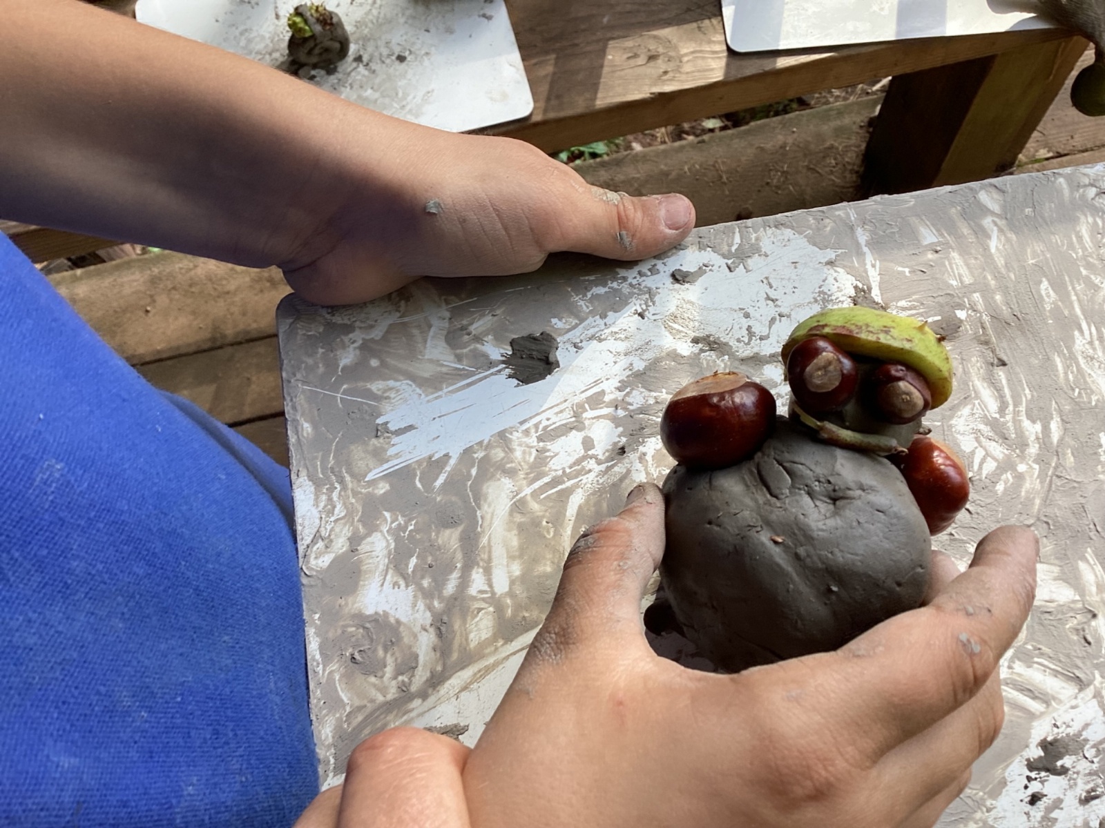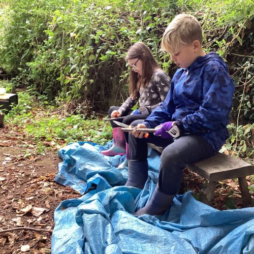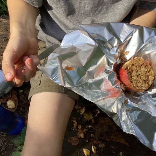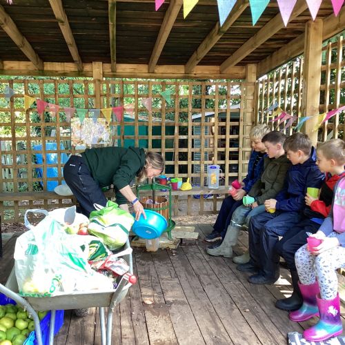 Autumn sunshine for APPLES! - baked apple crumbles on the fire, apple bobbing relay, toasted apple cubes with cinnamon and sugar and apple juicing. Then conker creations, determination to have success with ice cream making, lots of fabulous clay creativity, whittling and trench clearing.