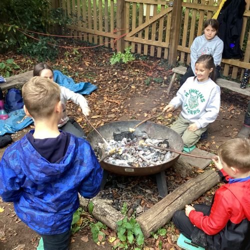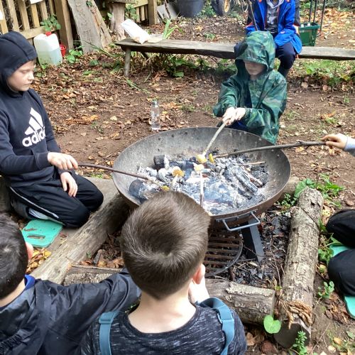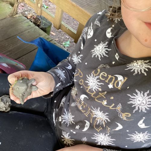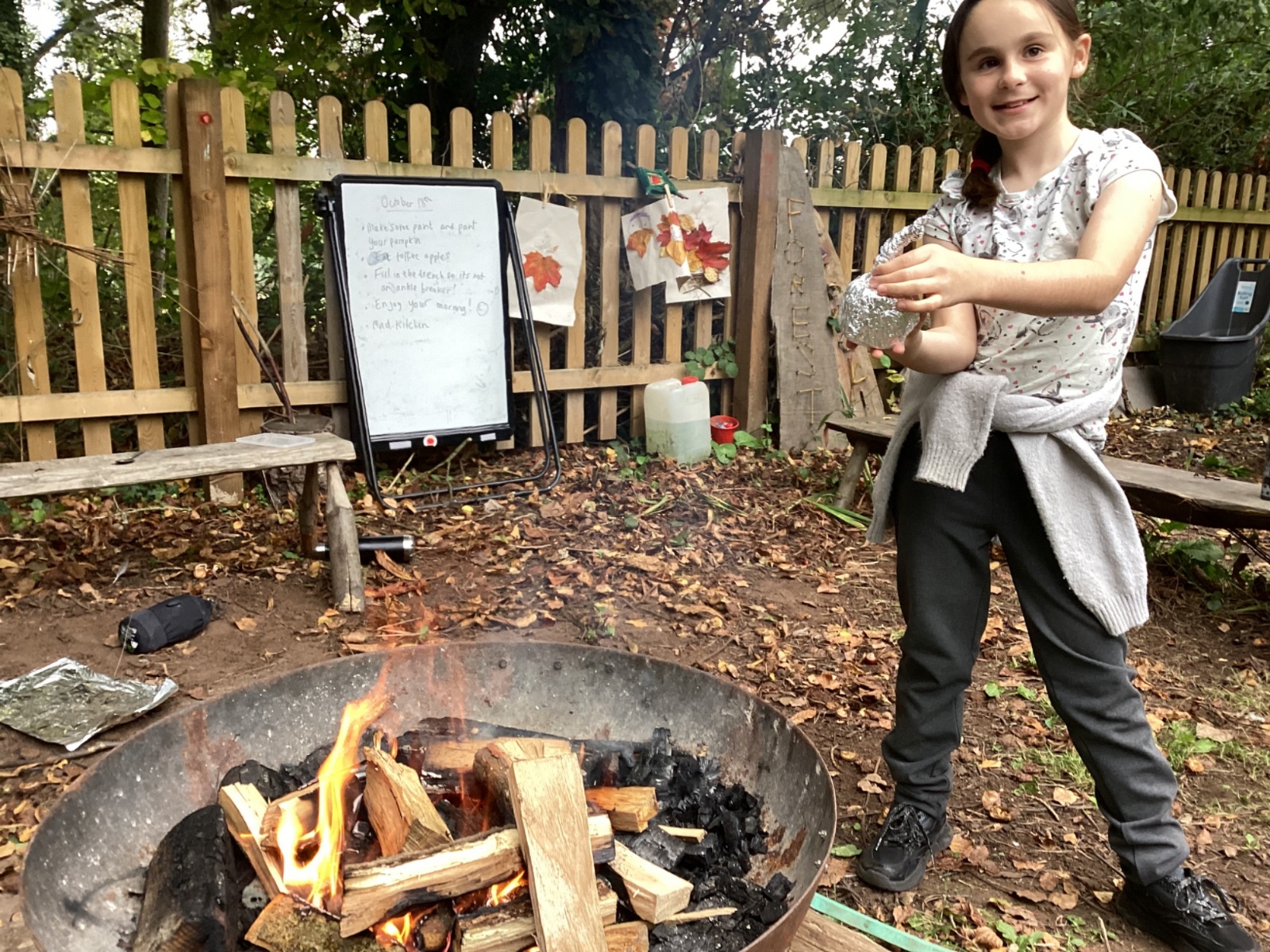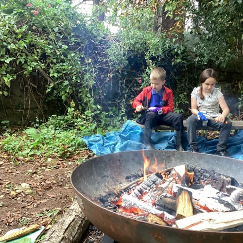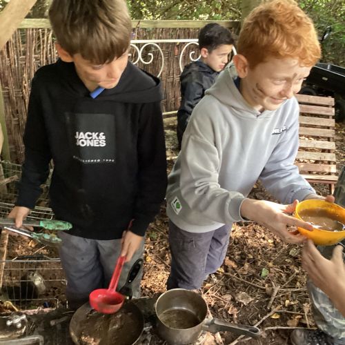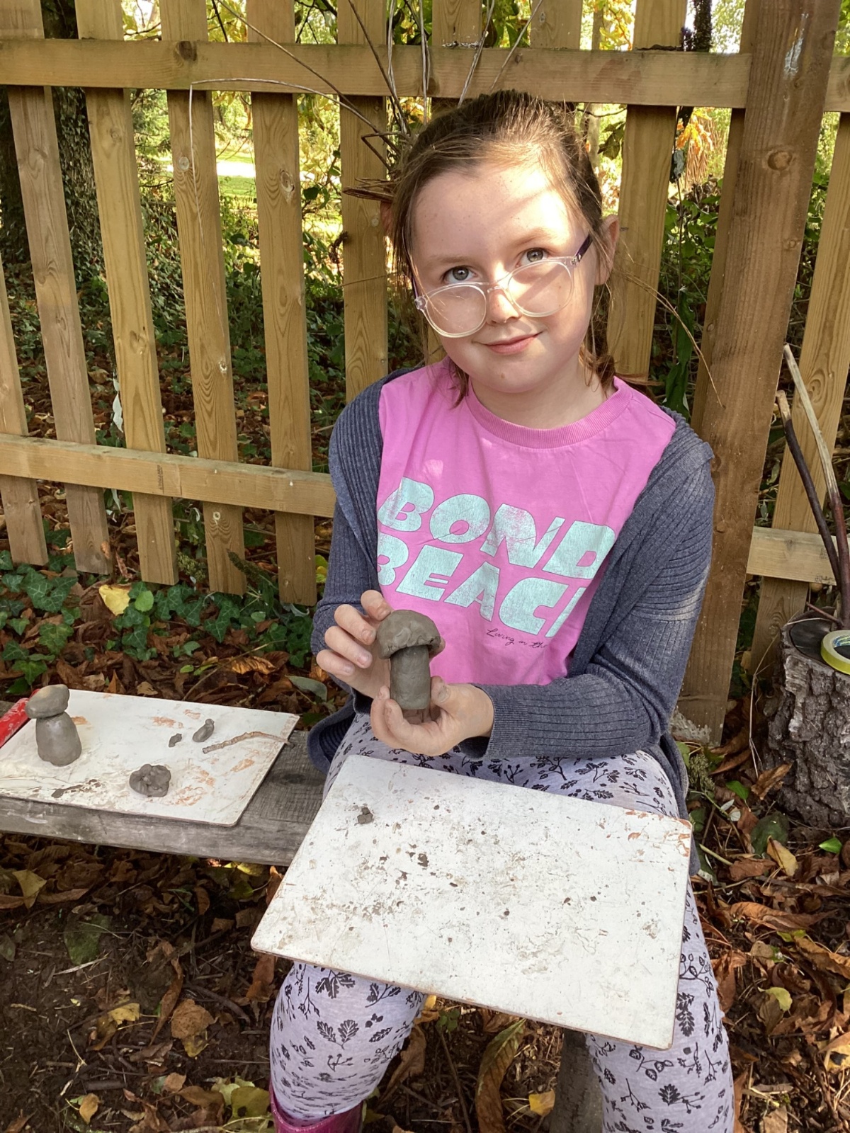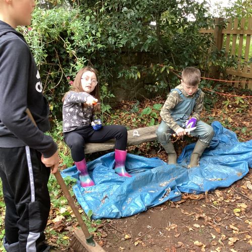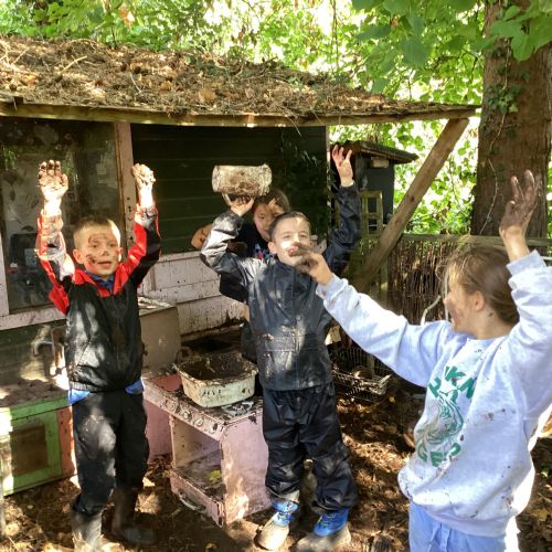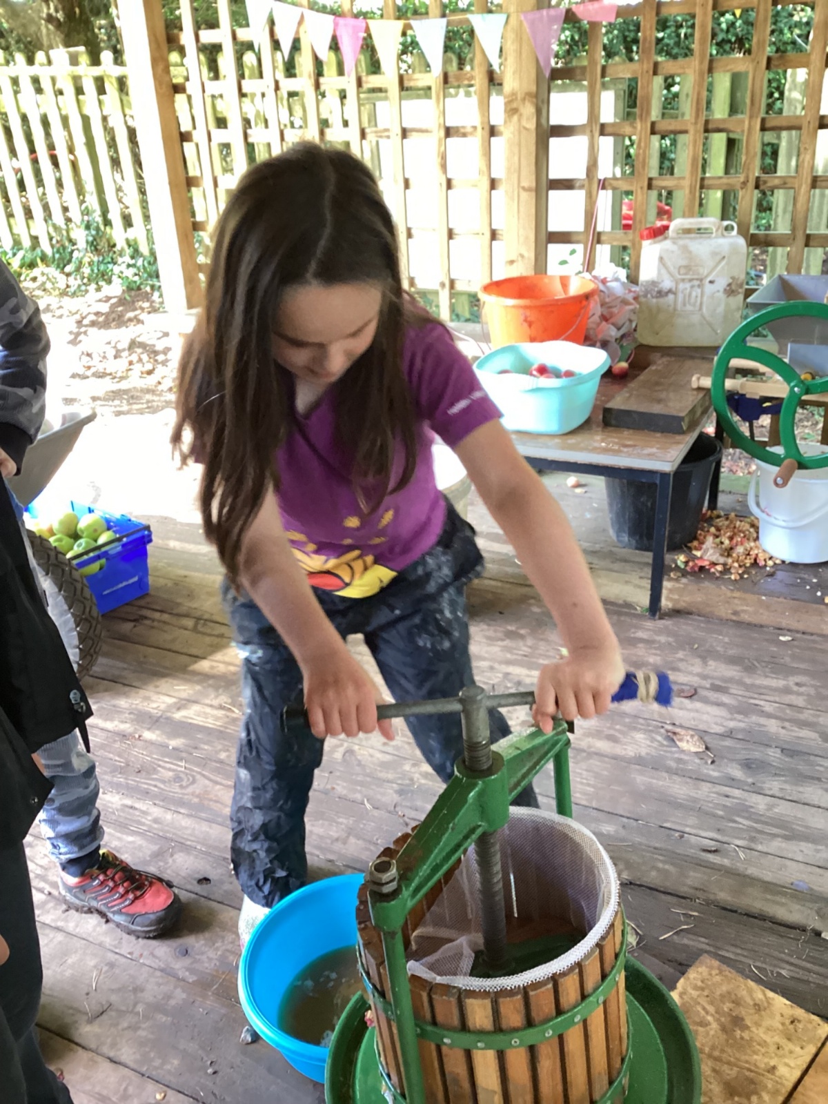 Autumn sunshine for APPLES! - baked apple crumbles on the fire, apple bobbing relay, toasted apple cubes with cinnamon and sugar and apple juicing. Then conker creations, determination to have success with ice cream making, lots of fabulous clay creativity, whittling and trench clearing.