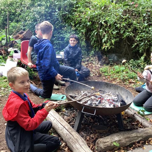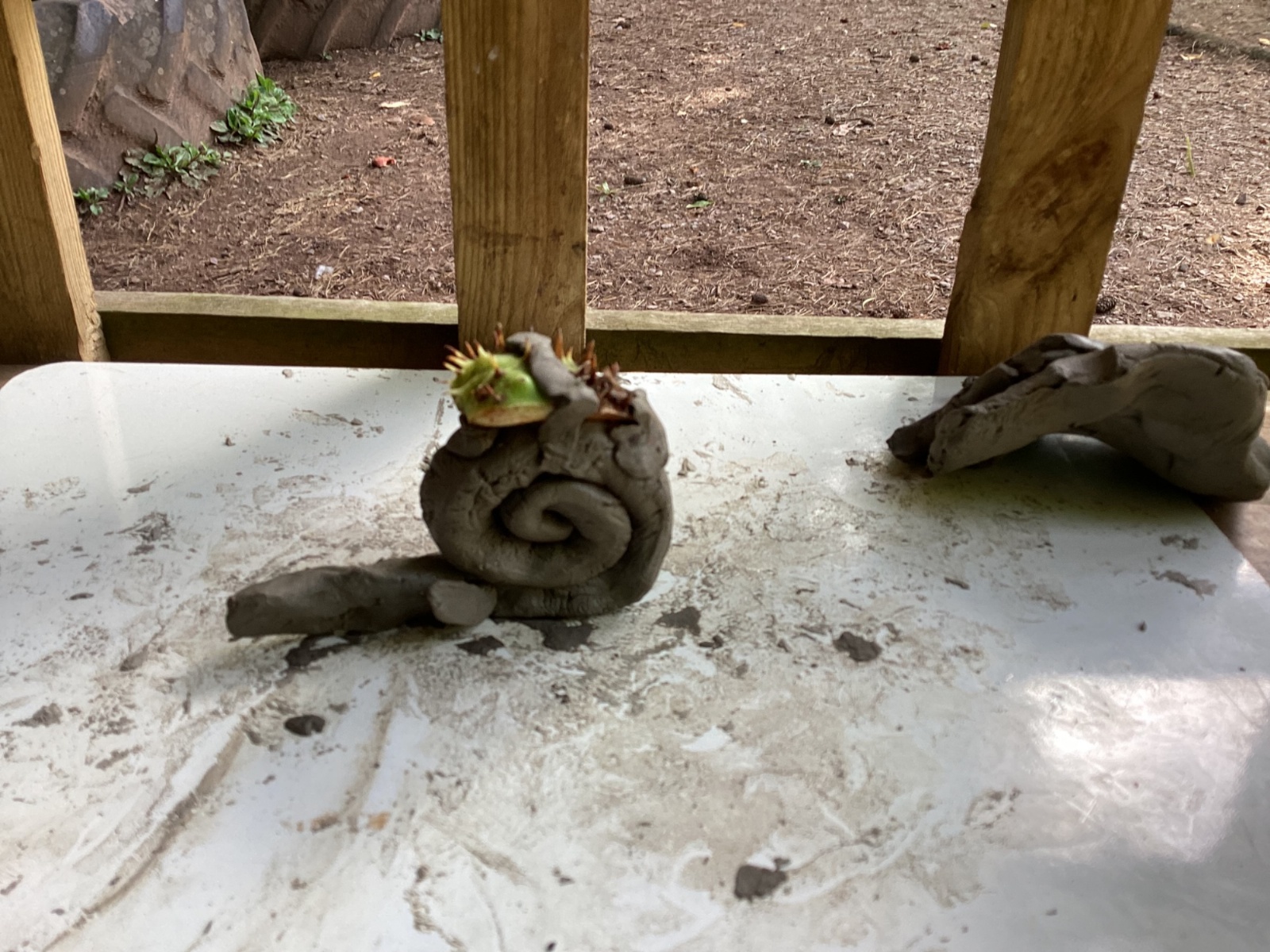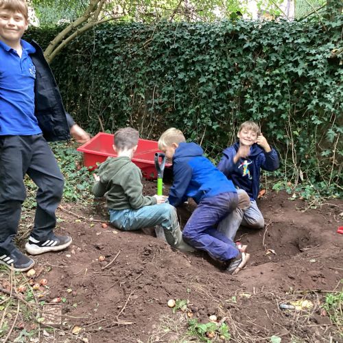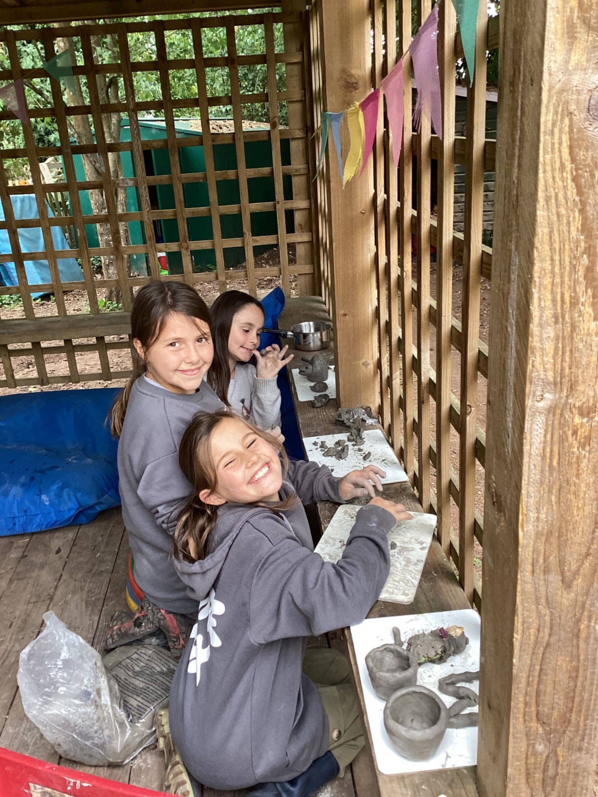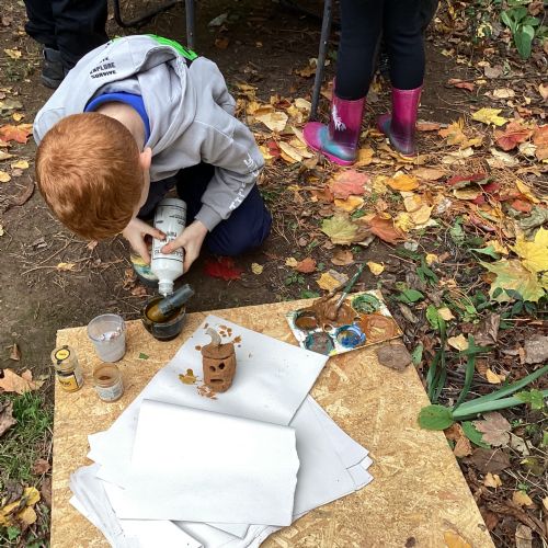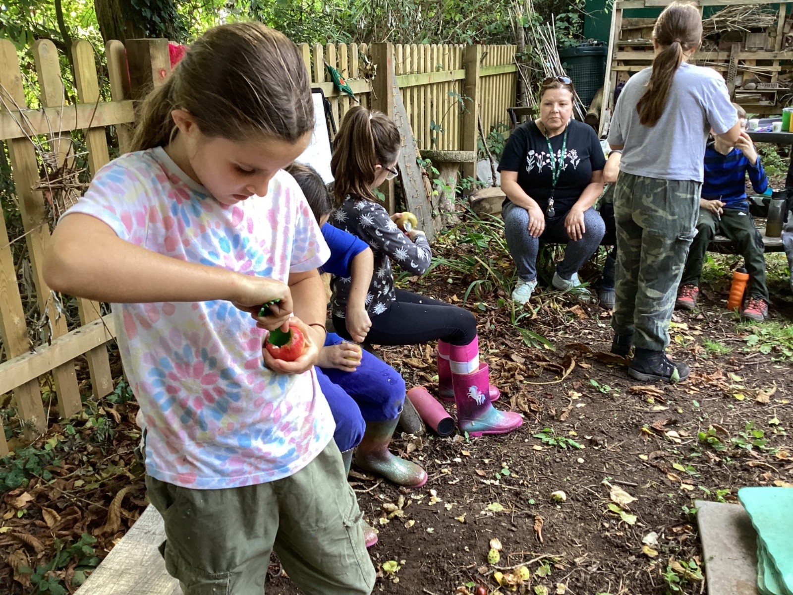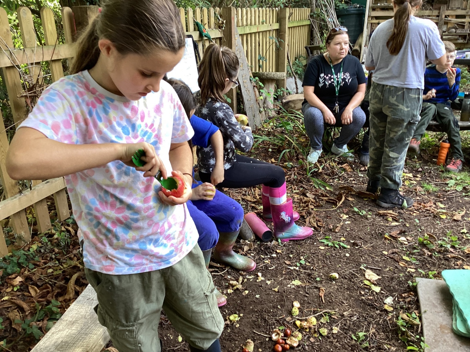 Autumn sunshine for APPLES! - baked apple crumbles on the fire, apple bobbing relay, toasted apple cubes with cinnamon and sugar and apple juicing. Then conker creations, determination to have success with ice cream making, lots of fabulous clay creativity, whittling and trench clearing.