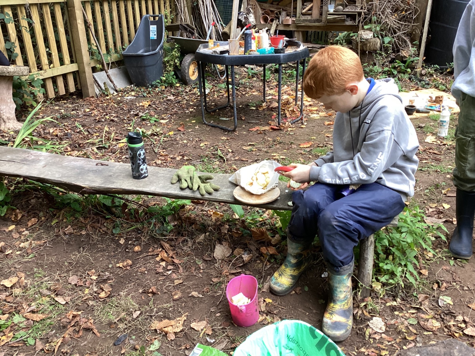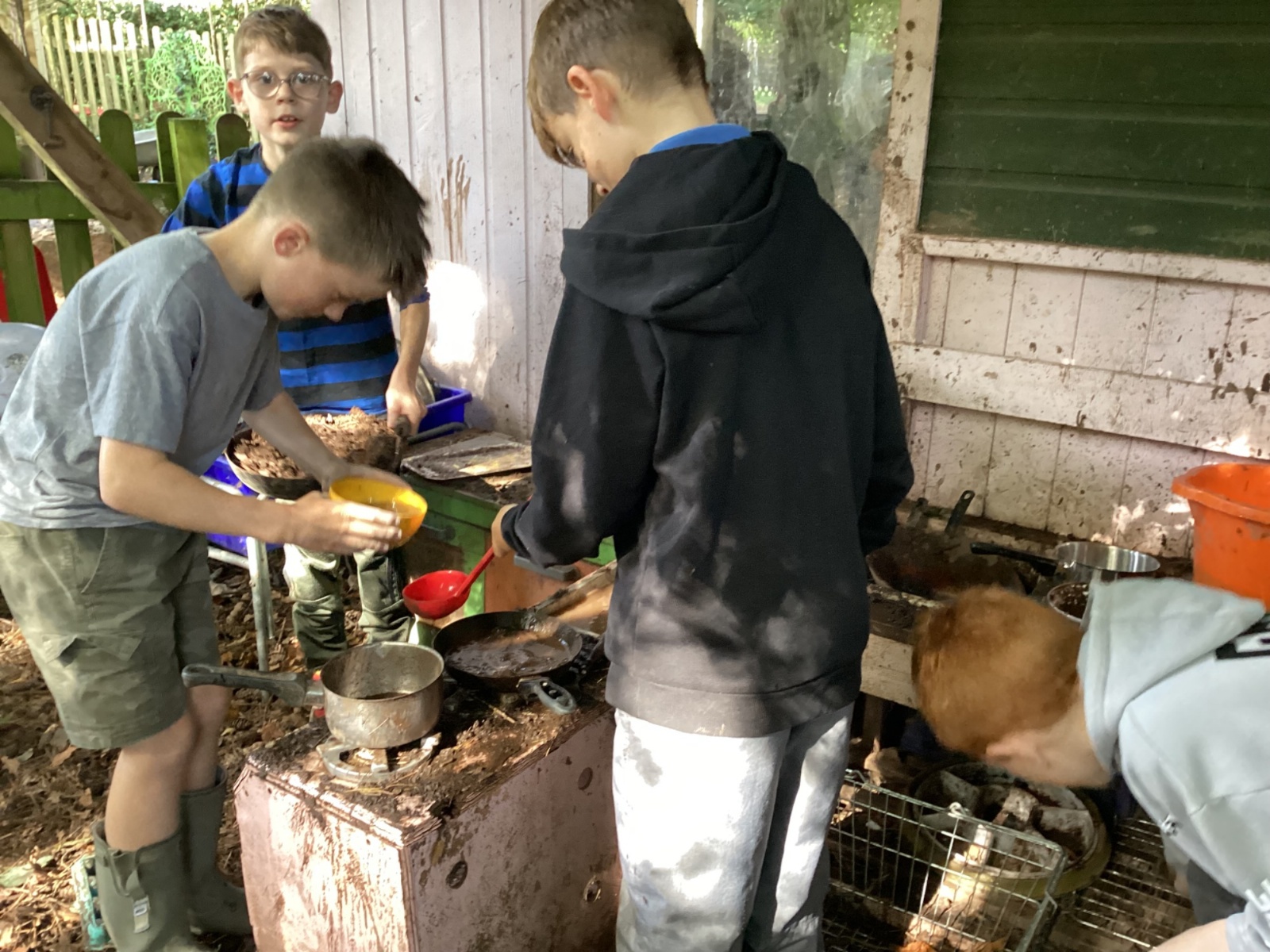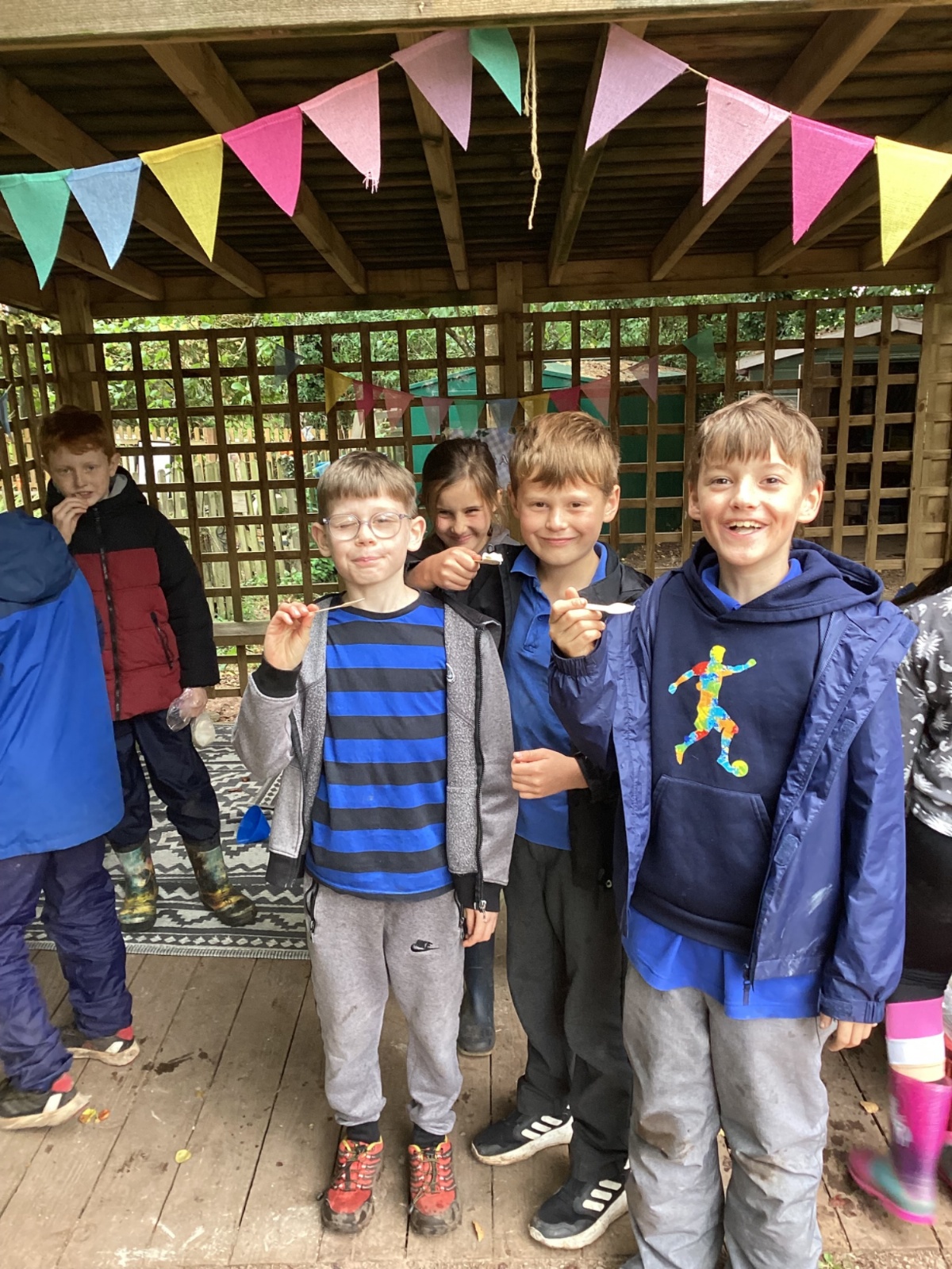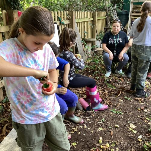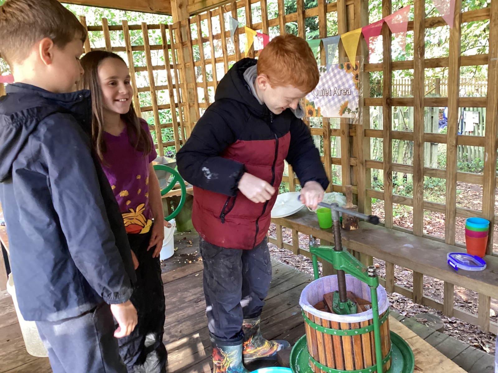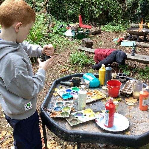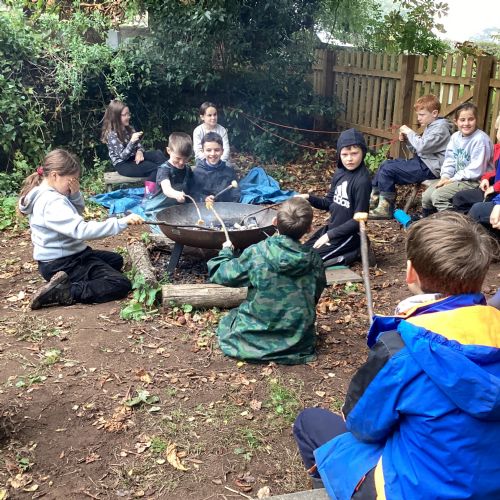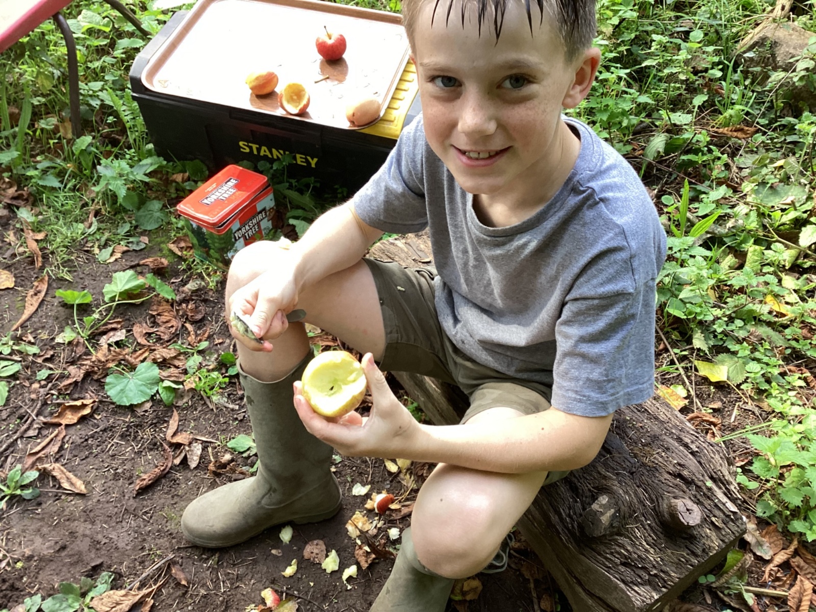 Autumn sunshine for APPLES! - baked apple crumbles on the fire, apple bobbing relay, toasted apple cubes with cinnamon and sugar and apple juicing. Then conker creations, determination to have success with ice cream making, lots of fabulous clay creativity, whittling and trench clearing.