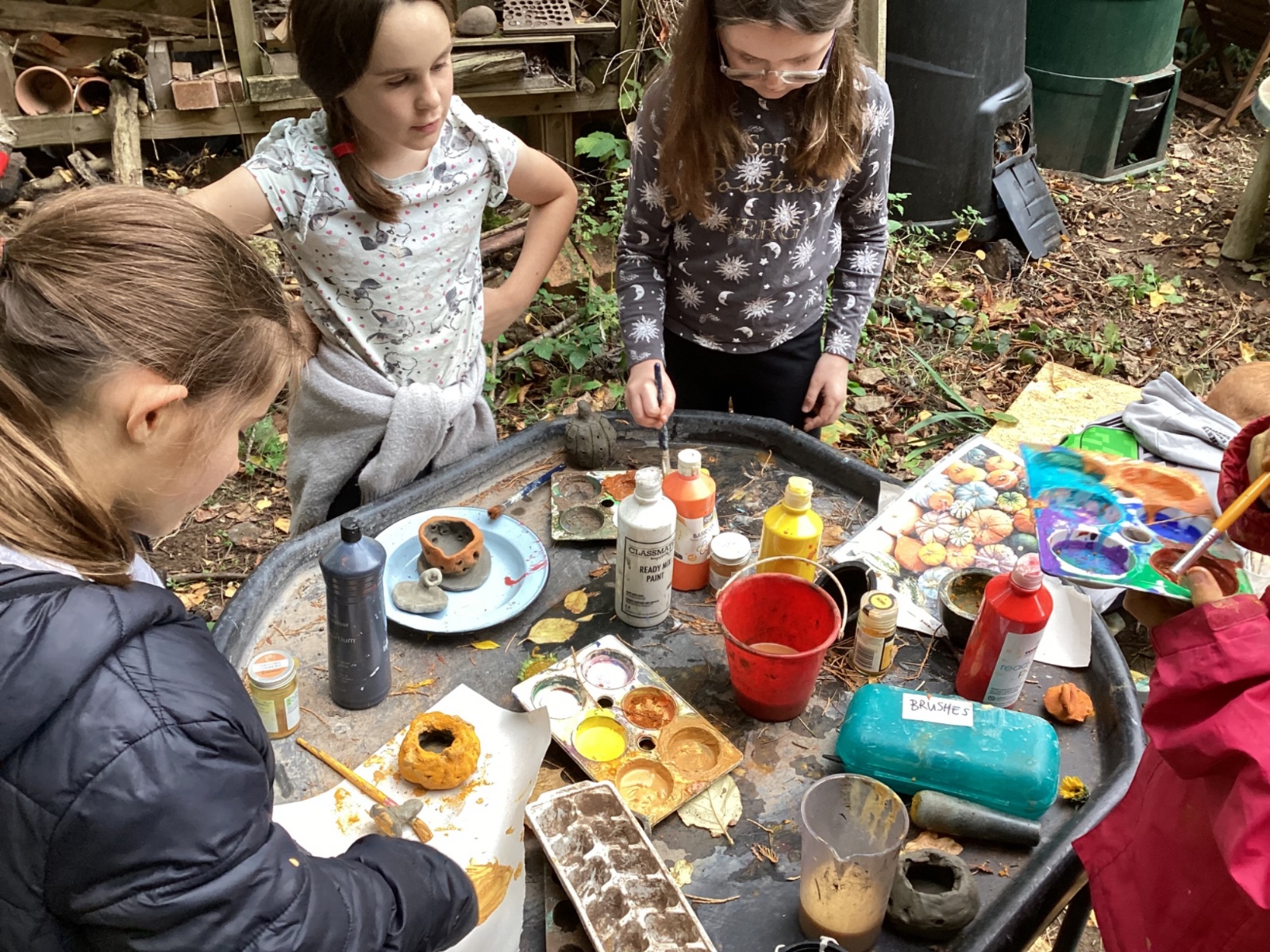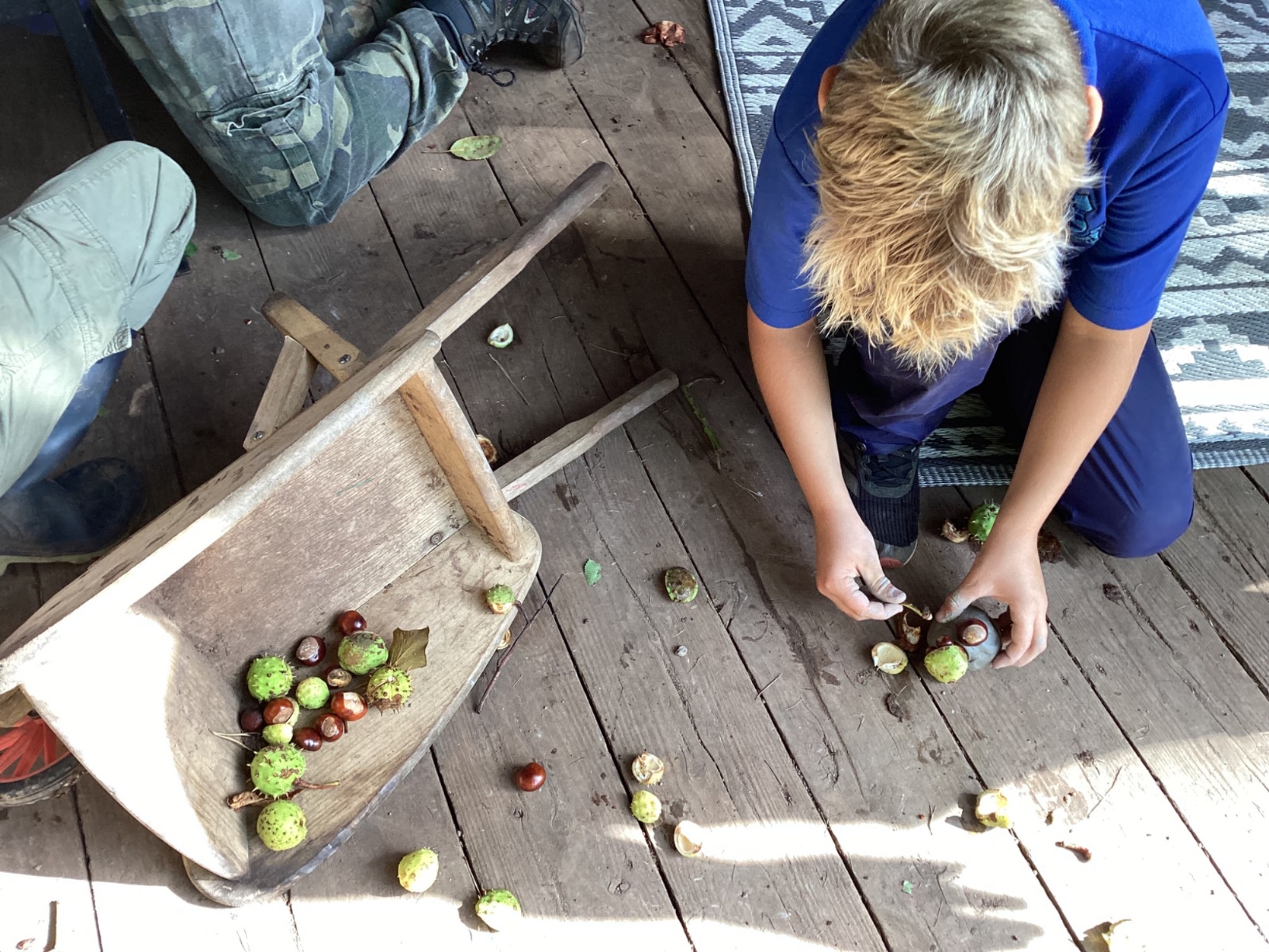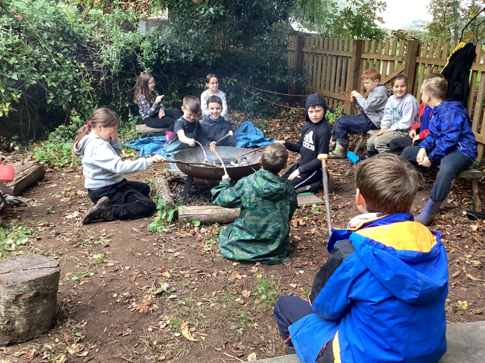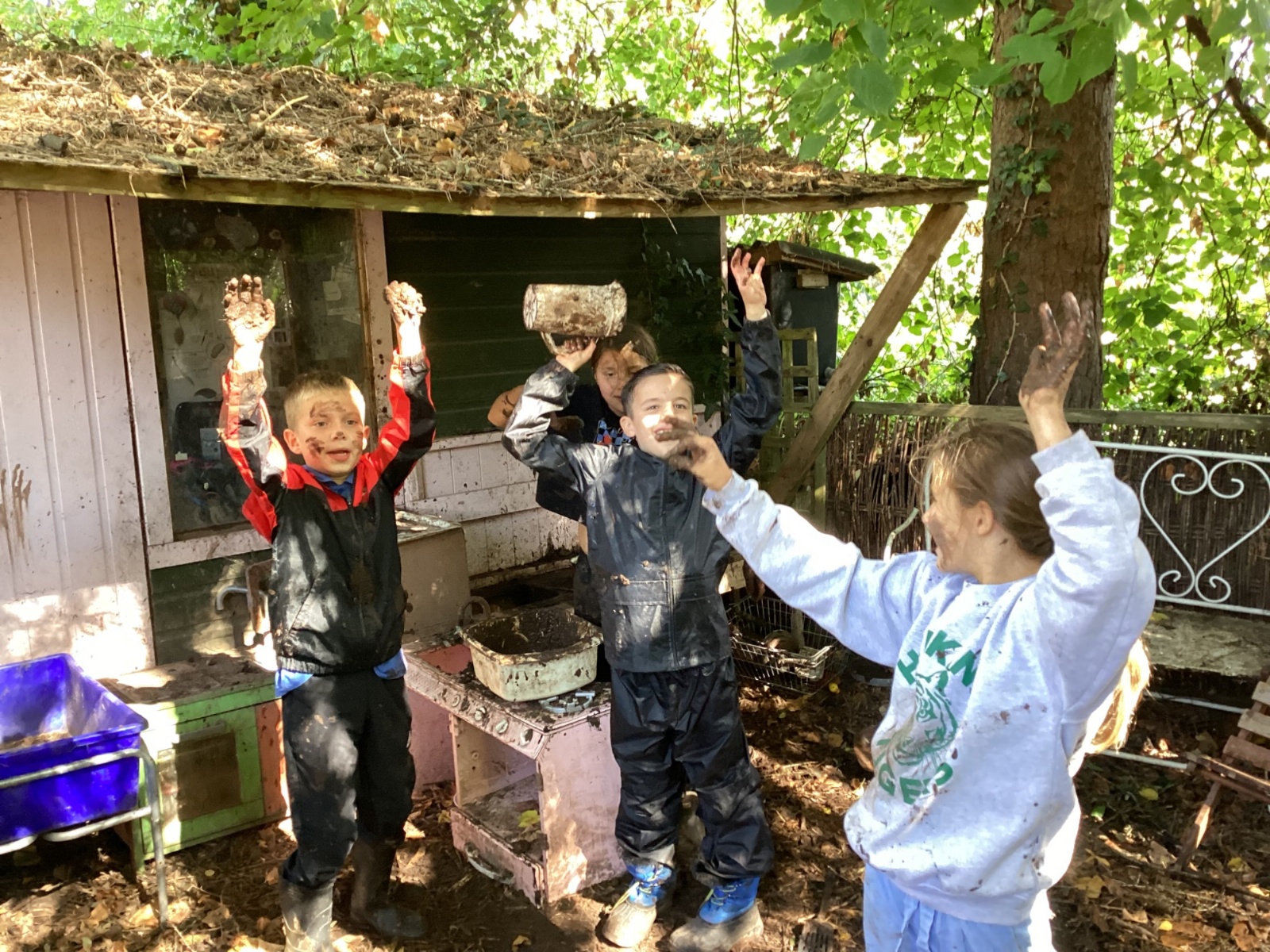 Autumn sunshine for APPLES! - baked apple crumbles on the fire, apple bobbing relay, toasted apple cubes with cinnamon and sugar and apple juicing. Then conker creations, determination to have success with ice cream making, lots of fabulous clay creativity, whittling and trench clearing.