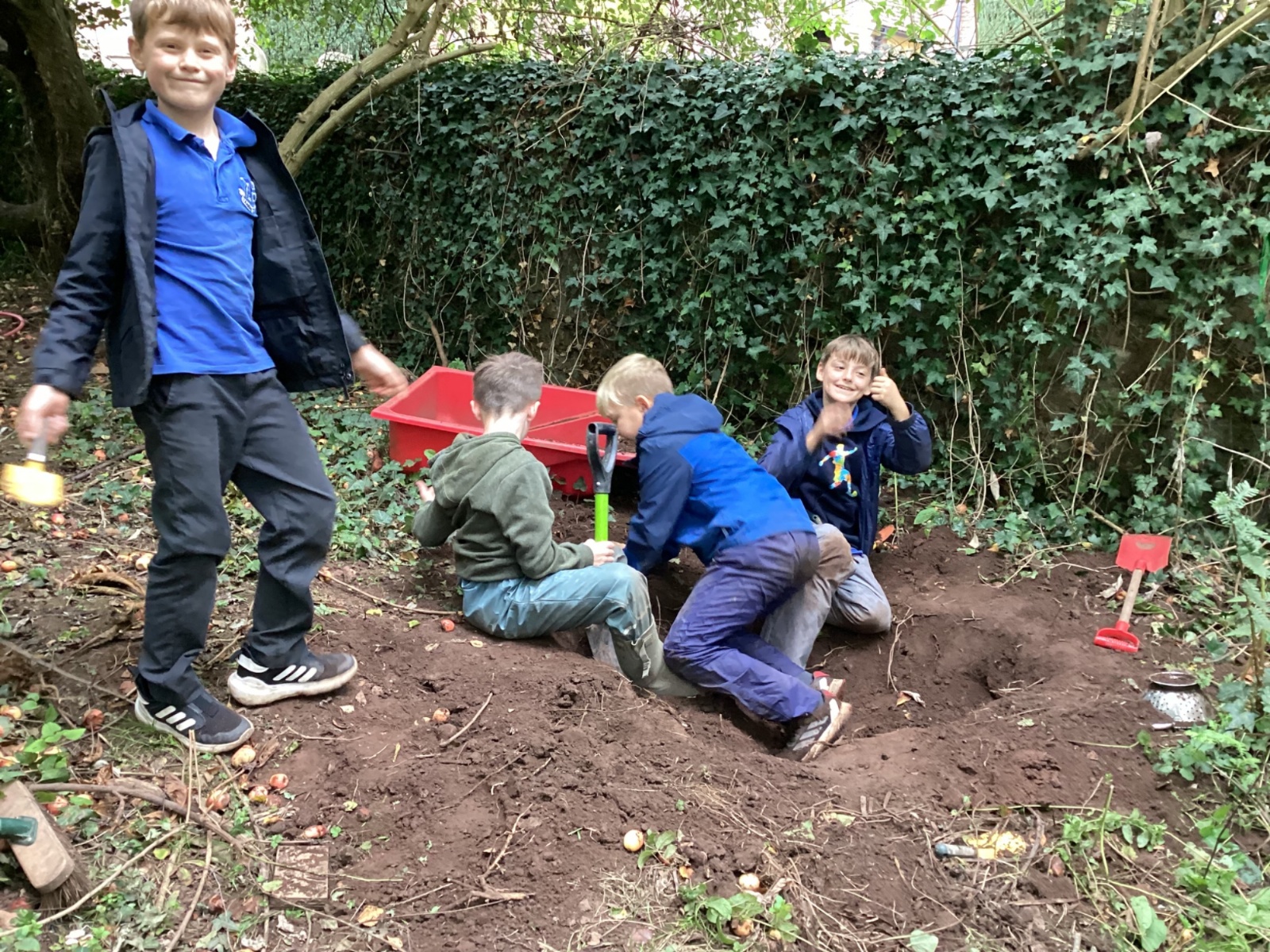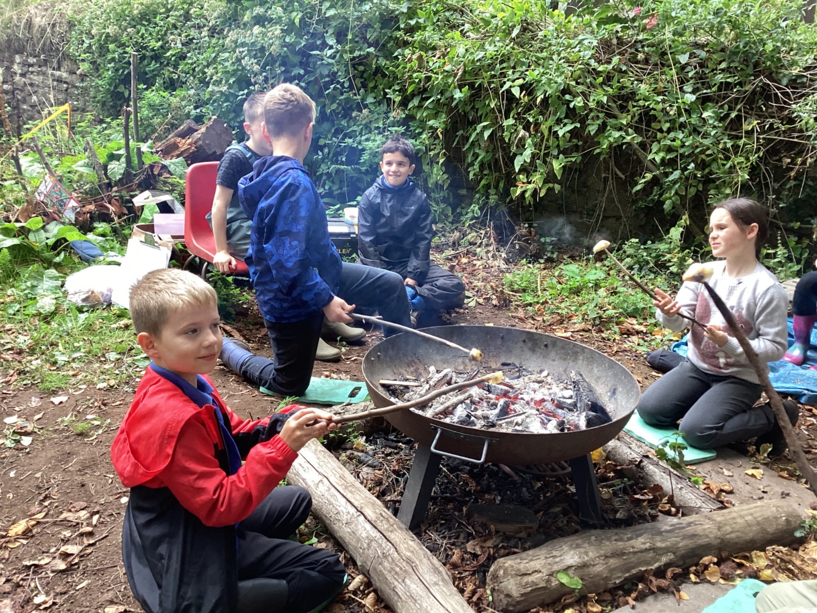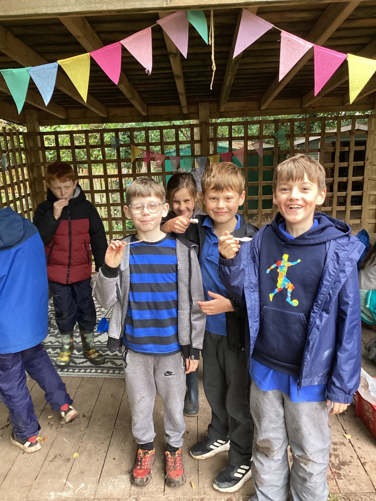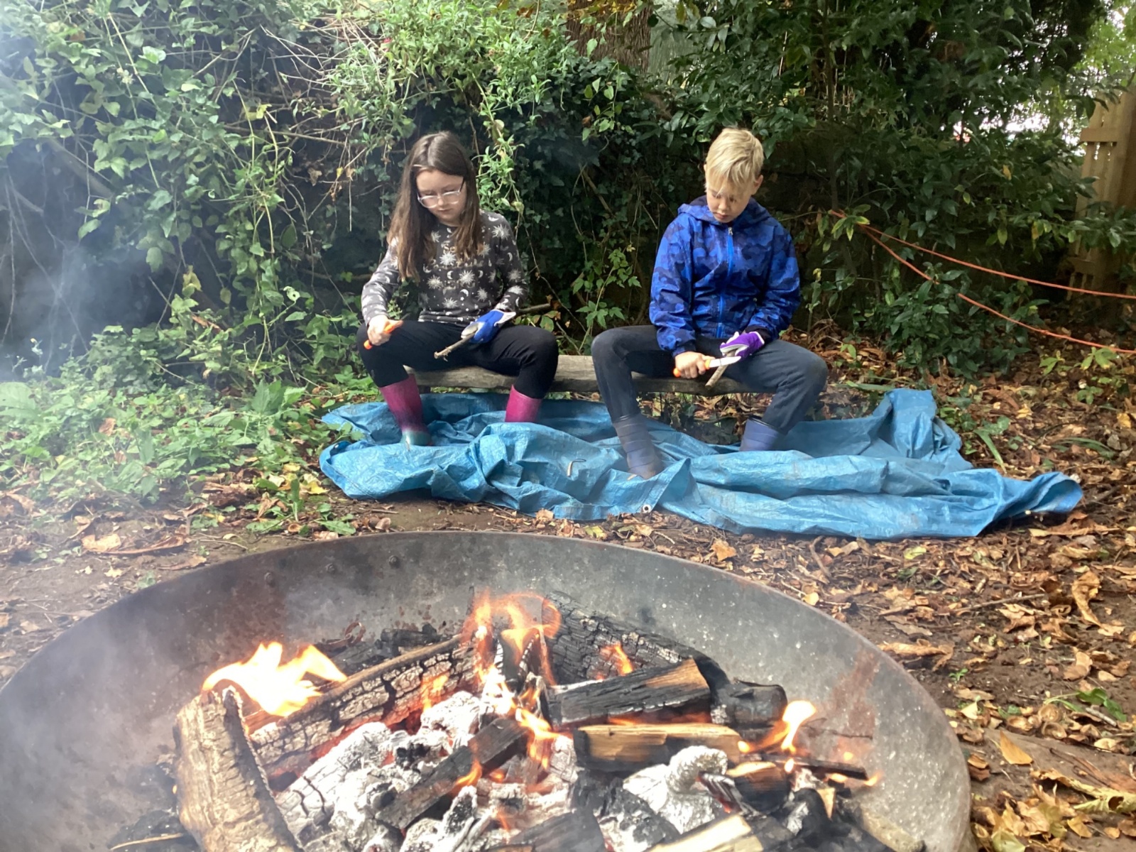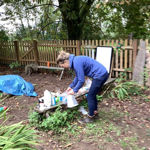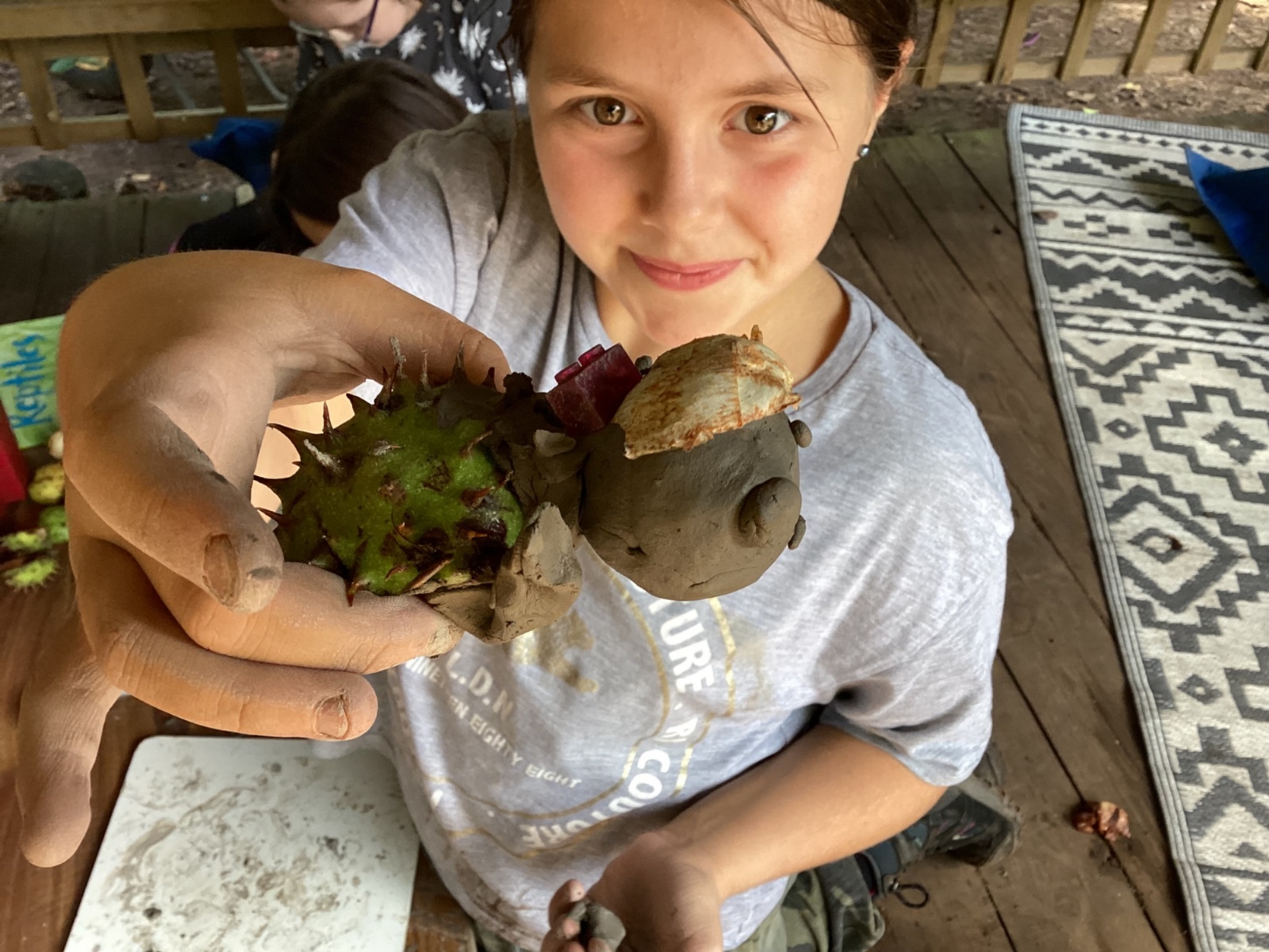 Autumn sunshine for APPLES! - baked apple crumbles on the fire, apple bobbing relay, toasted apple cubes with cinnamon and sugar and apple juicing. Then conker creations, determination to have success with ice cream making, lots of fabulous clay creativity, whittling and trench clearing.
