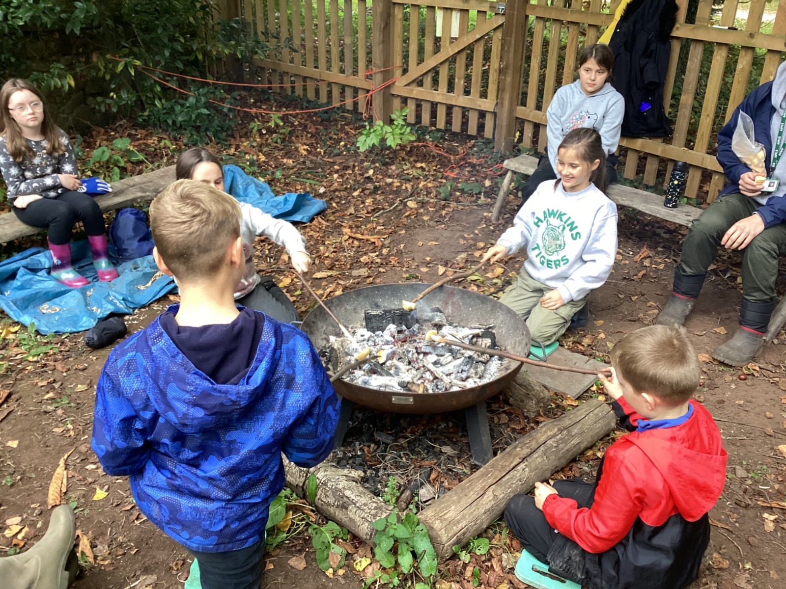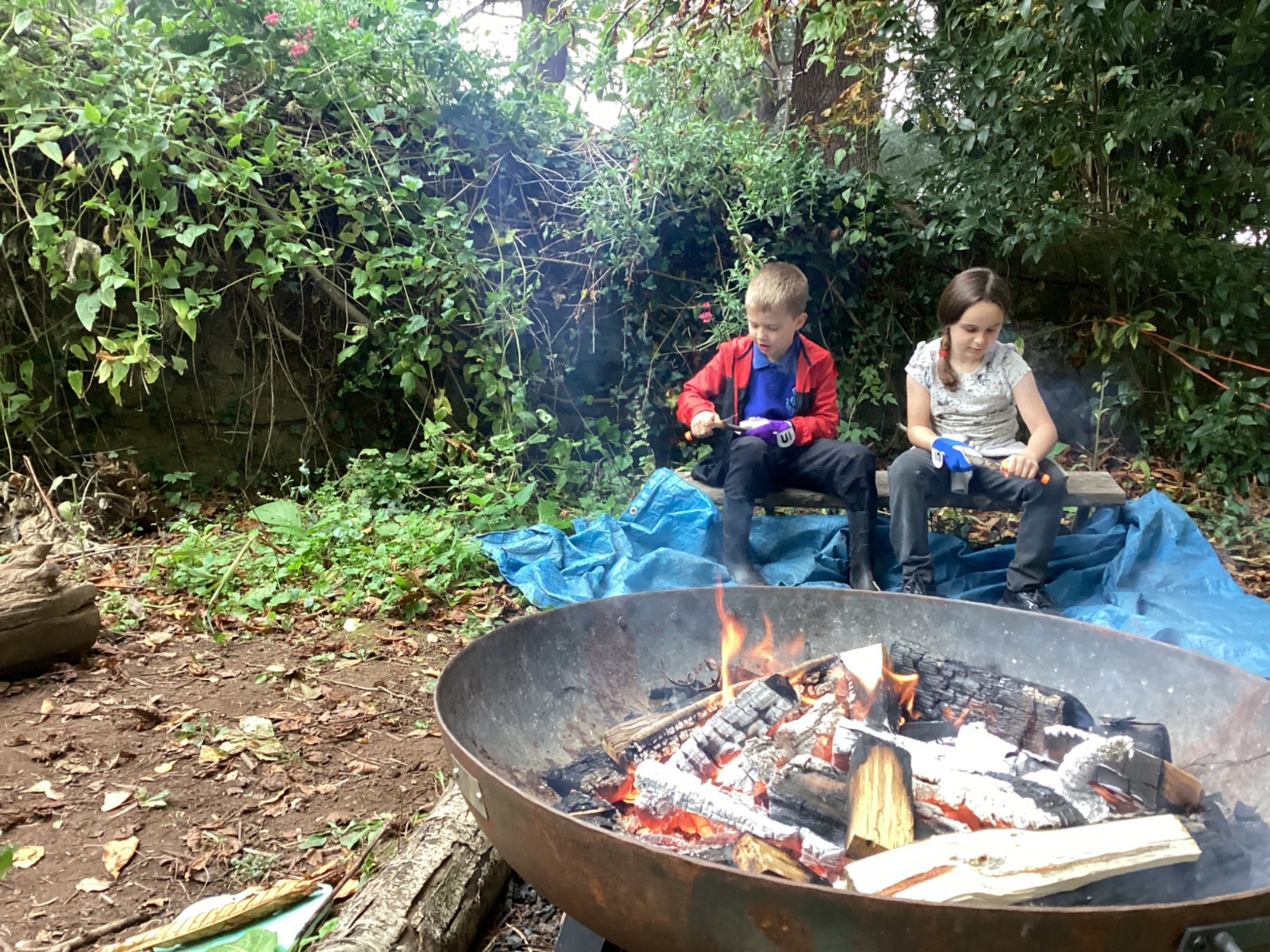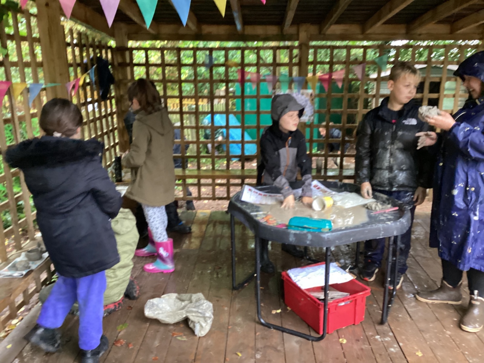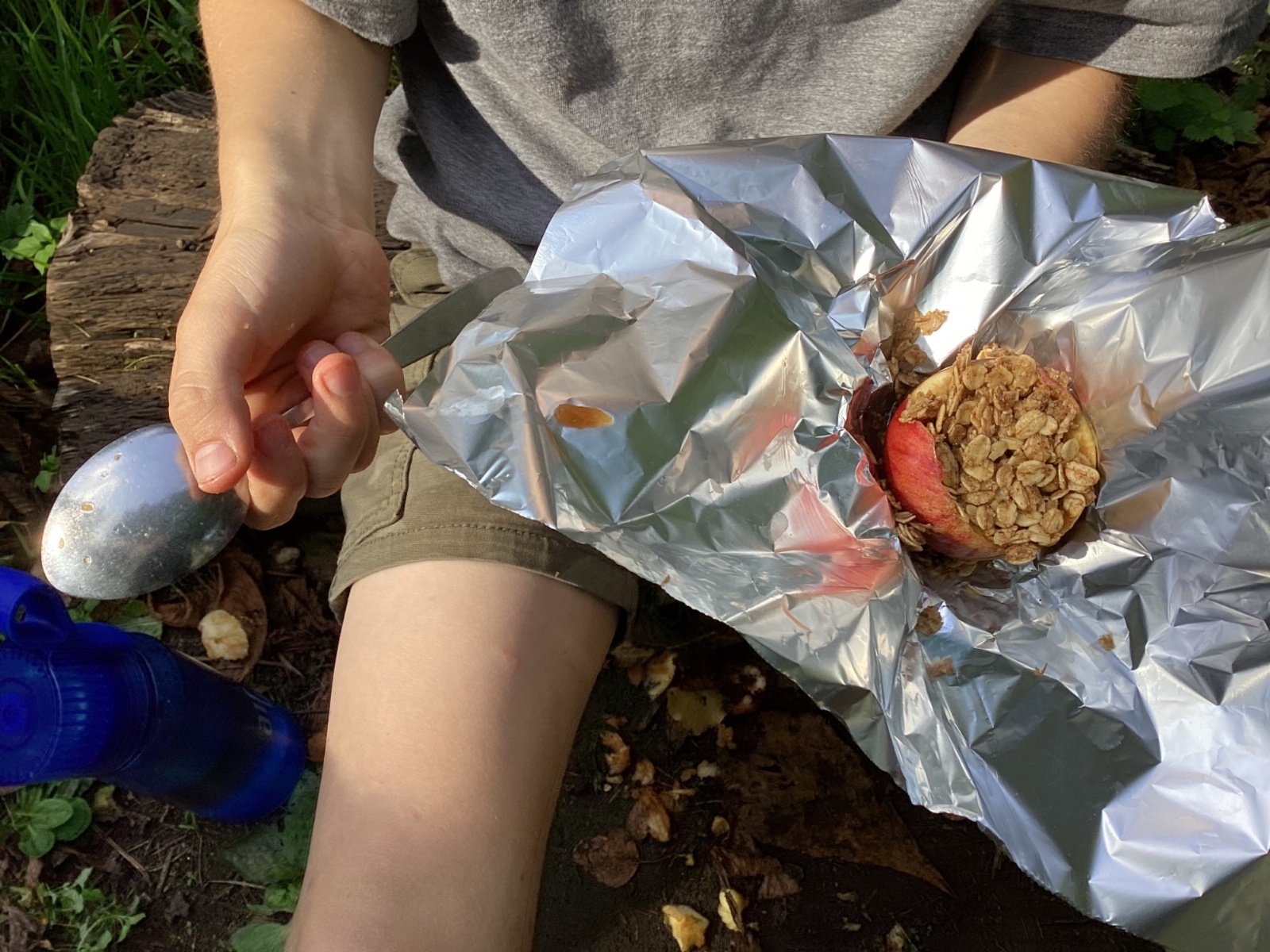 Autumn sunshine for APPLES! - baked apple crumbles on the fire, apple bobbing relay, toasted apple cubes with cinnamon and sugar and apple juicing. Then conker creations, determination to have success with ice cream making, lots of fabulous clay creativity, whittling and trench clearing.