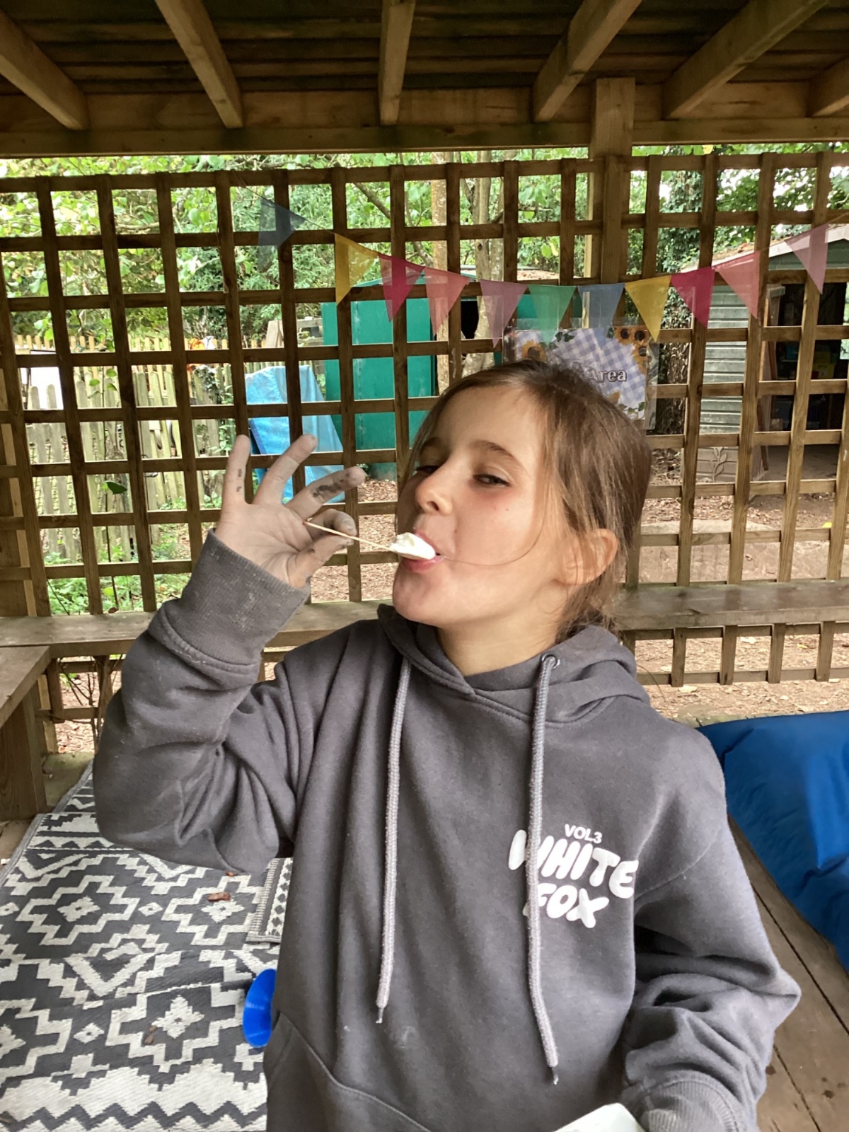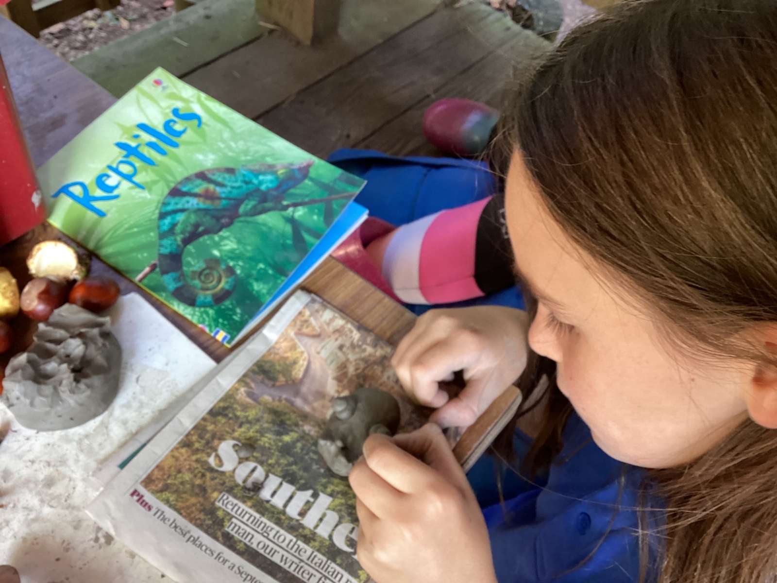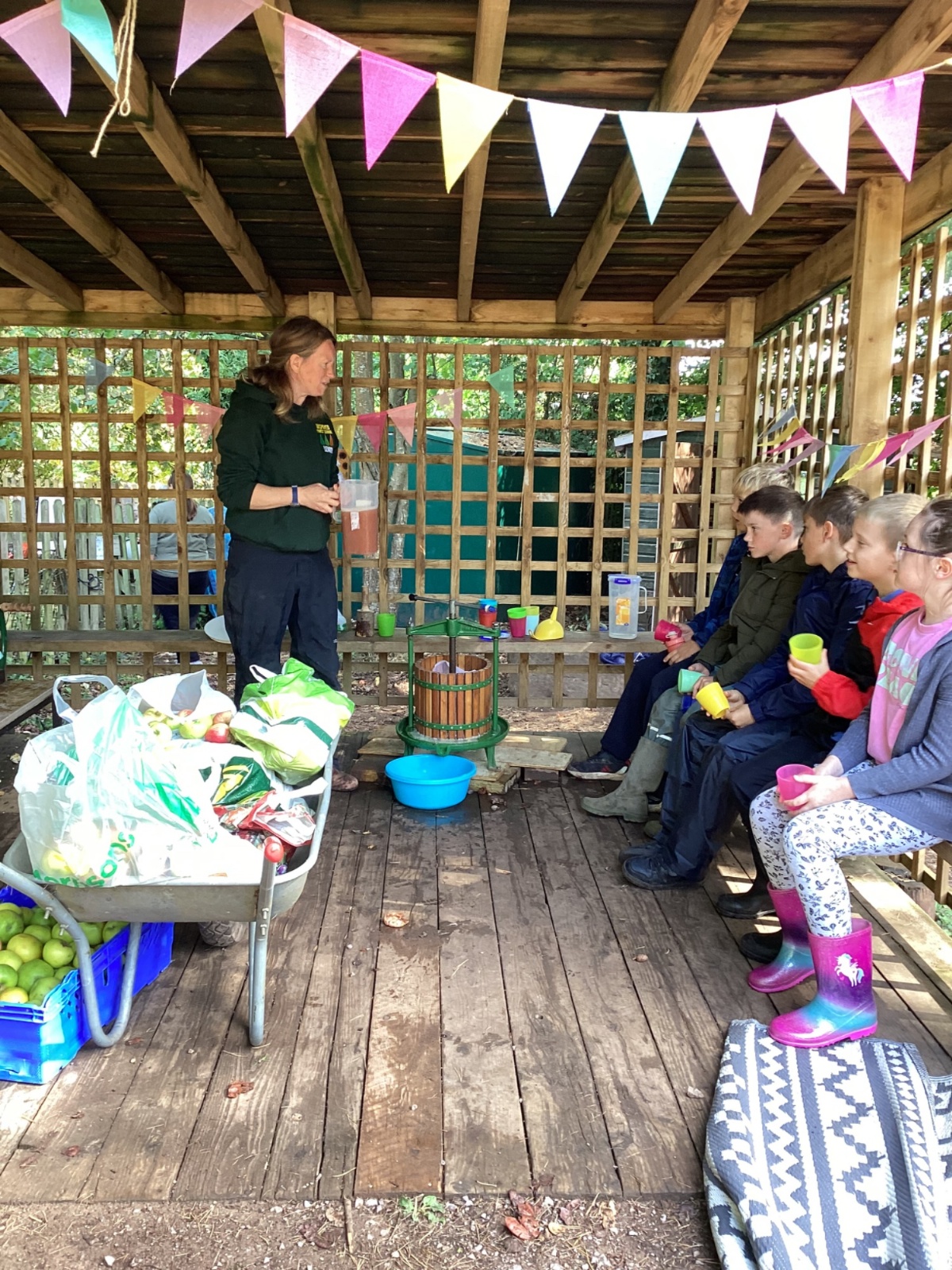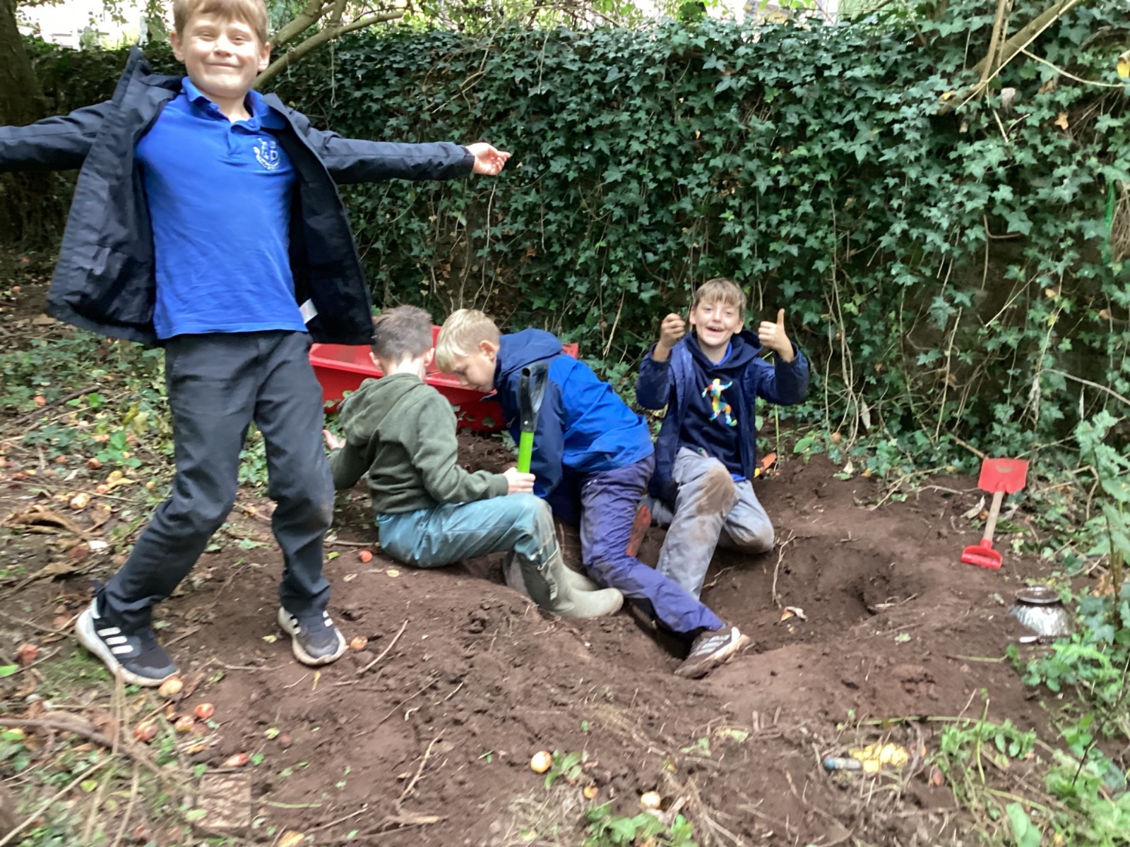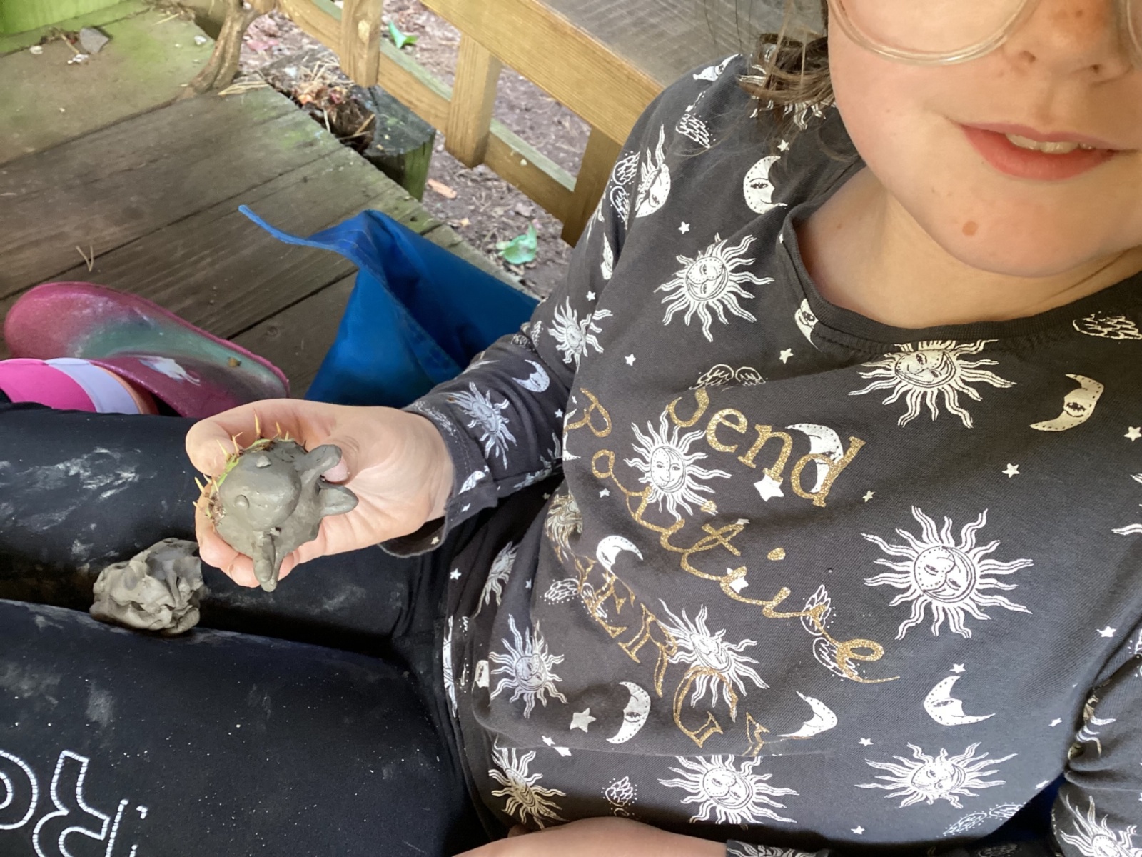 Autumn sunshine for APPLES! - baked apple crumbles on the fire, apple bobbing relay, toasted apple cubes with cinnamon and sugar and apple juicing. Then conker creations, determination to have success with ice cream making, lots of fabulous clay creativity, whittling and trench clearing.